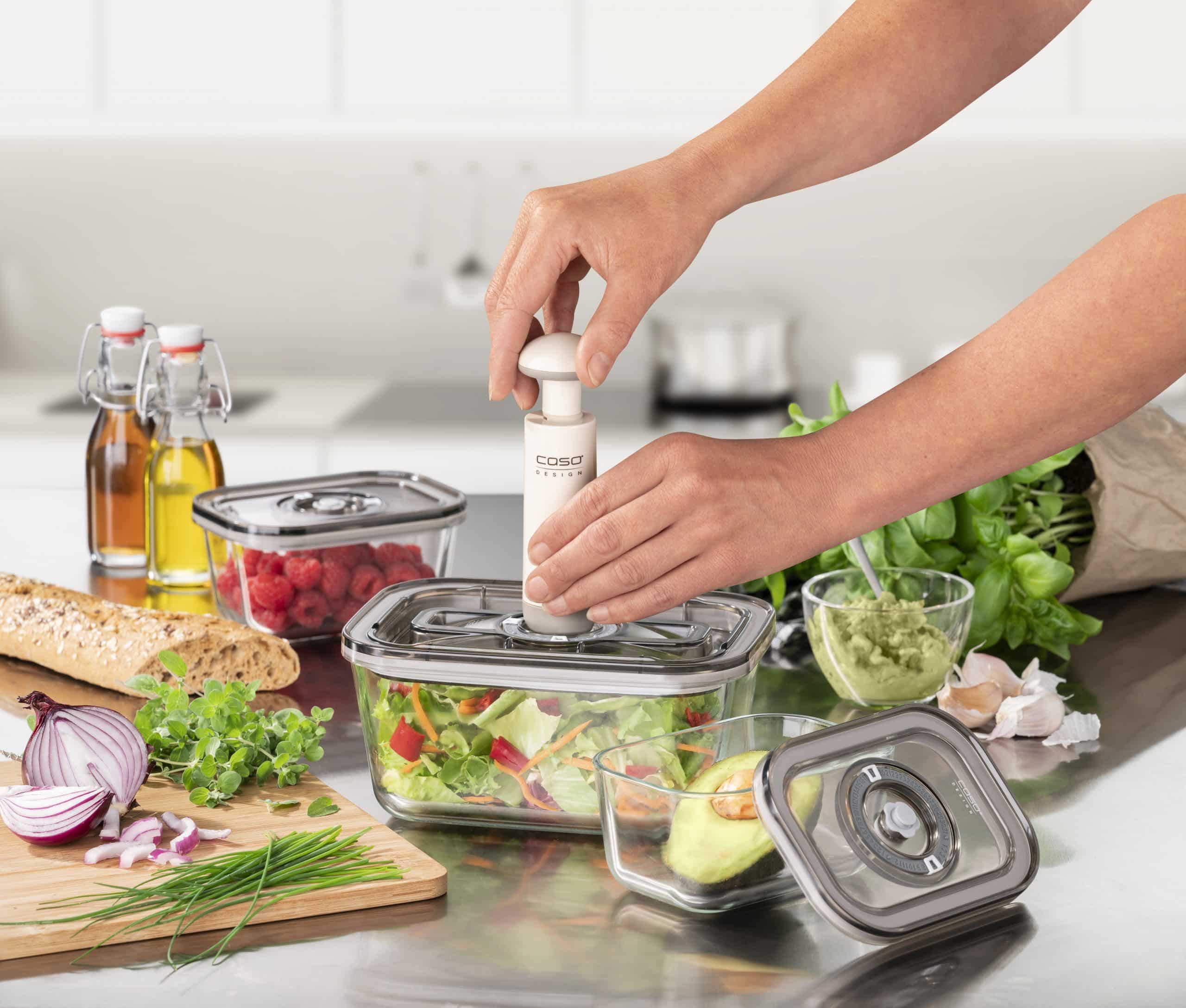 Cel mai important atuu este faptul că recipientele din sticlă pentru vidat păstrează alimentele proaspete cu până la 8 ori mai mult decât în mod tradițional.