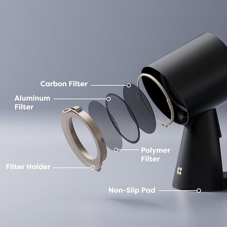 Ciarra Hood To Go utilizează un sistem de filtrare în trei straturi, fiecare filtru având un rol specific în menținerea unui aer curat și respirabil: