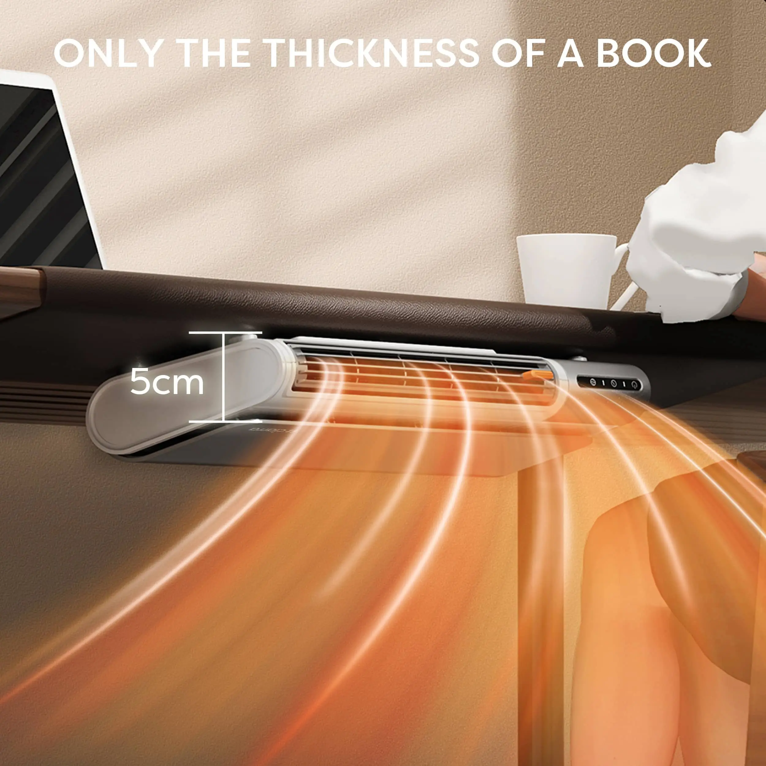 Aeroterma electrica, de la Ciarra, combina functii de incalzitor si ventilator, forma sa compacta si minimalista fiind ideala pentru birou sau spatii mici.