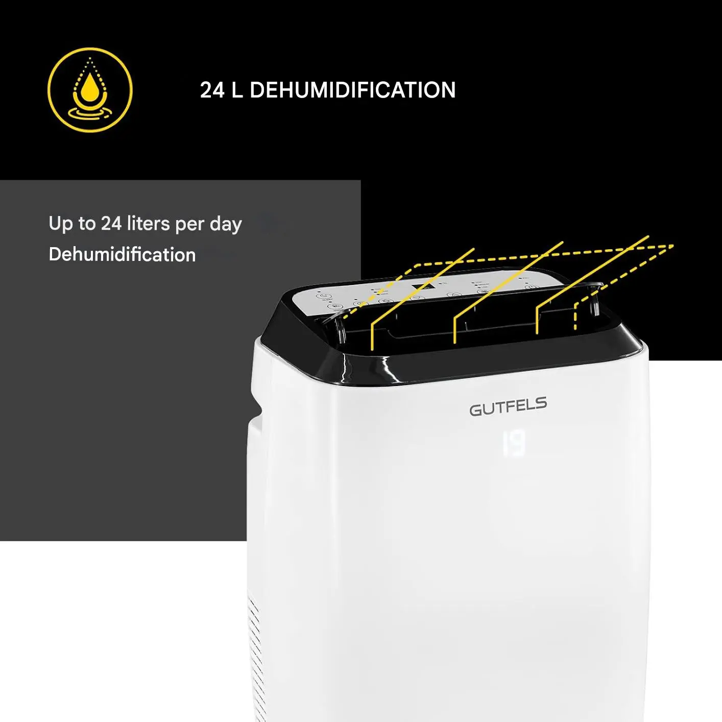 Datorita functiei de dezumidificare, aparatul de la Gutfels mentine umiditatea aerului la valoarea optima, astfel scapi de umiditatea in exces, mirosurile neplacute, dar si de durerile de cap, iritatii ale ochilor nasului sau gatului si poti preveni aparitia mucegaiului.