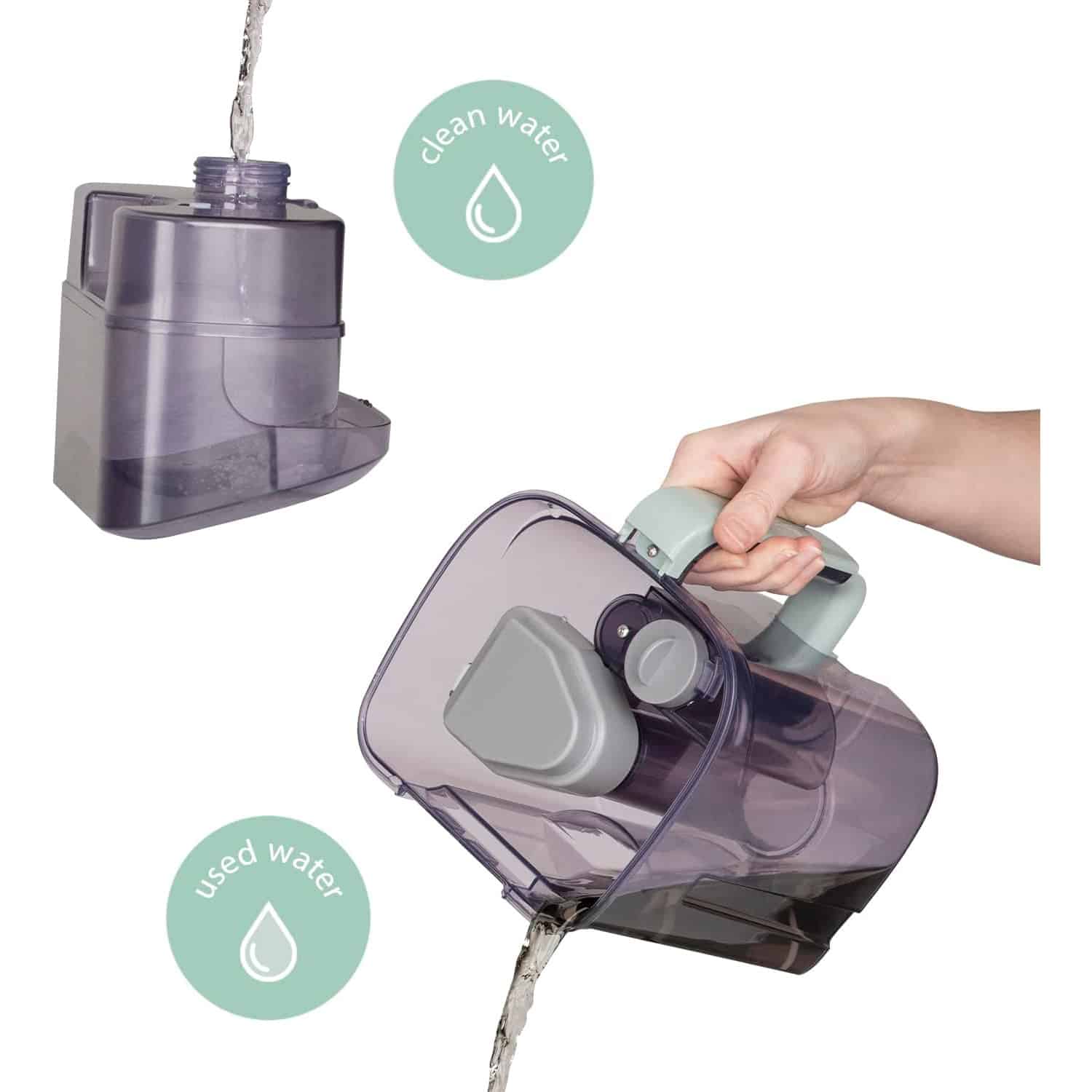 Rezervoarele cu apa curata si apa reziduala sunt detasabile, astfel incat umplerea, golirea si curatarea lor se fac cu usurinta. Sunt prevazute spatii de depozitare pentru perie, tubul de aspirare de 1.7 m si cablul electric.