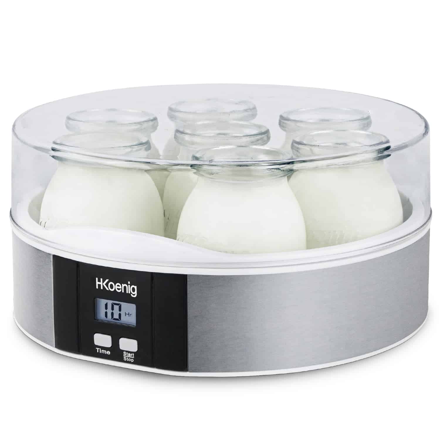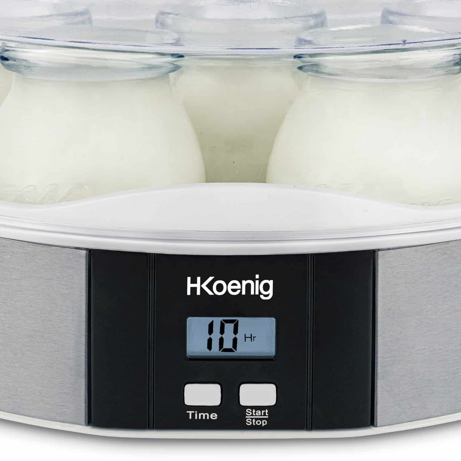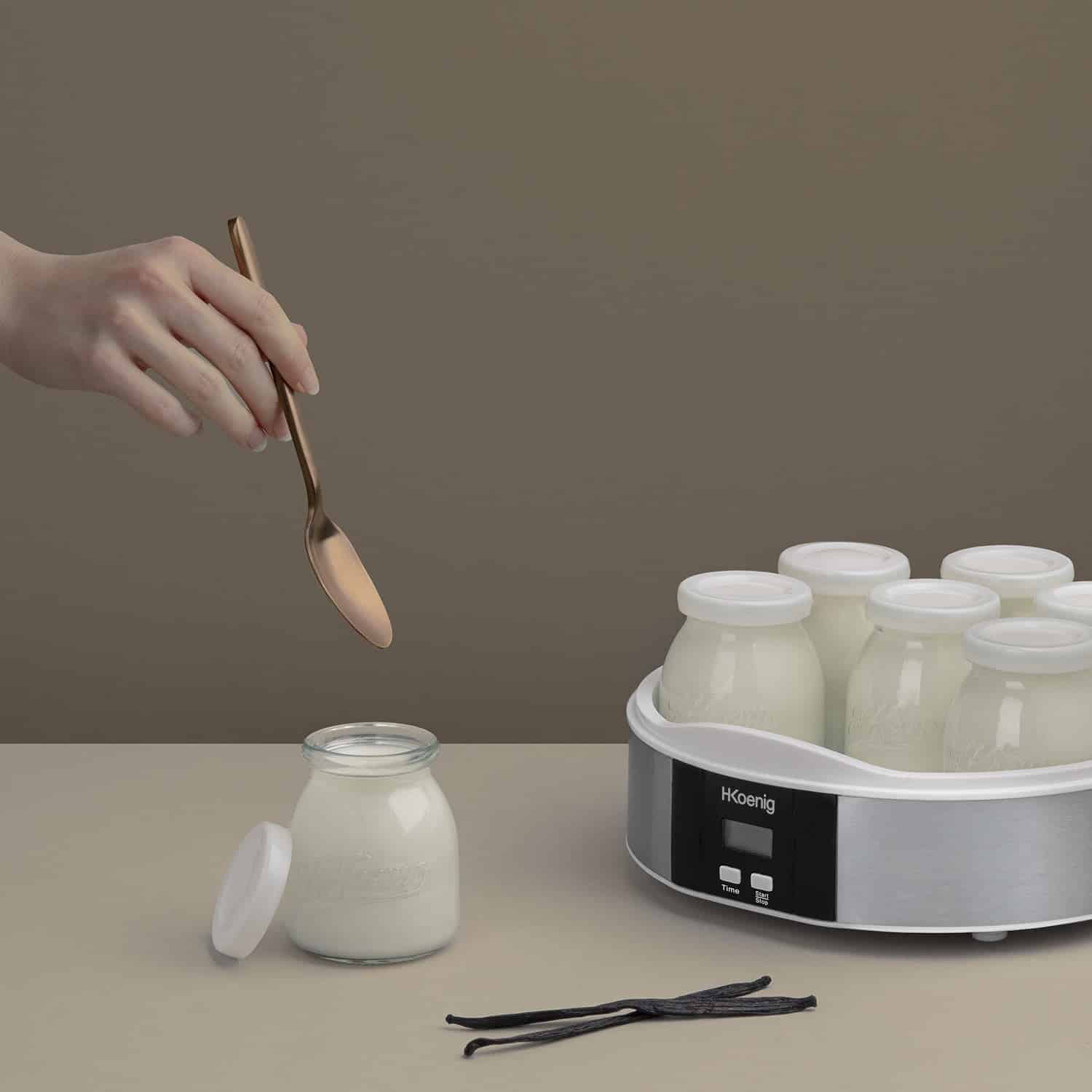Aparatul de preparat iaurt ELY70 de la H.Koenig este ideal pentru pregatirea unui iaurt sanatos, gustos si cel mai important – fara conservanti. Aparatul de preparat iaurt contine 7 borcane din sticla, fiecare a cate 160 ml, acest lucru insemnand peste 1 litru de iaurt gatit, pentru ca fiecare membru al familiei sa se bucure de o portie de iaurt proaspat. Serviti iaurtul cu gem, cereale, bucati de ciocolata, seminte sau fructe.