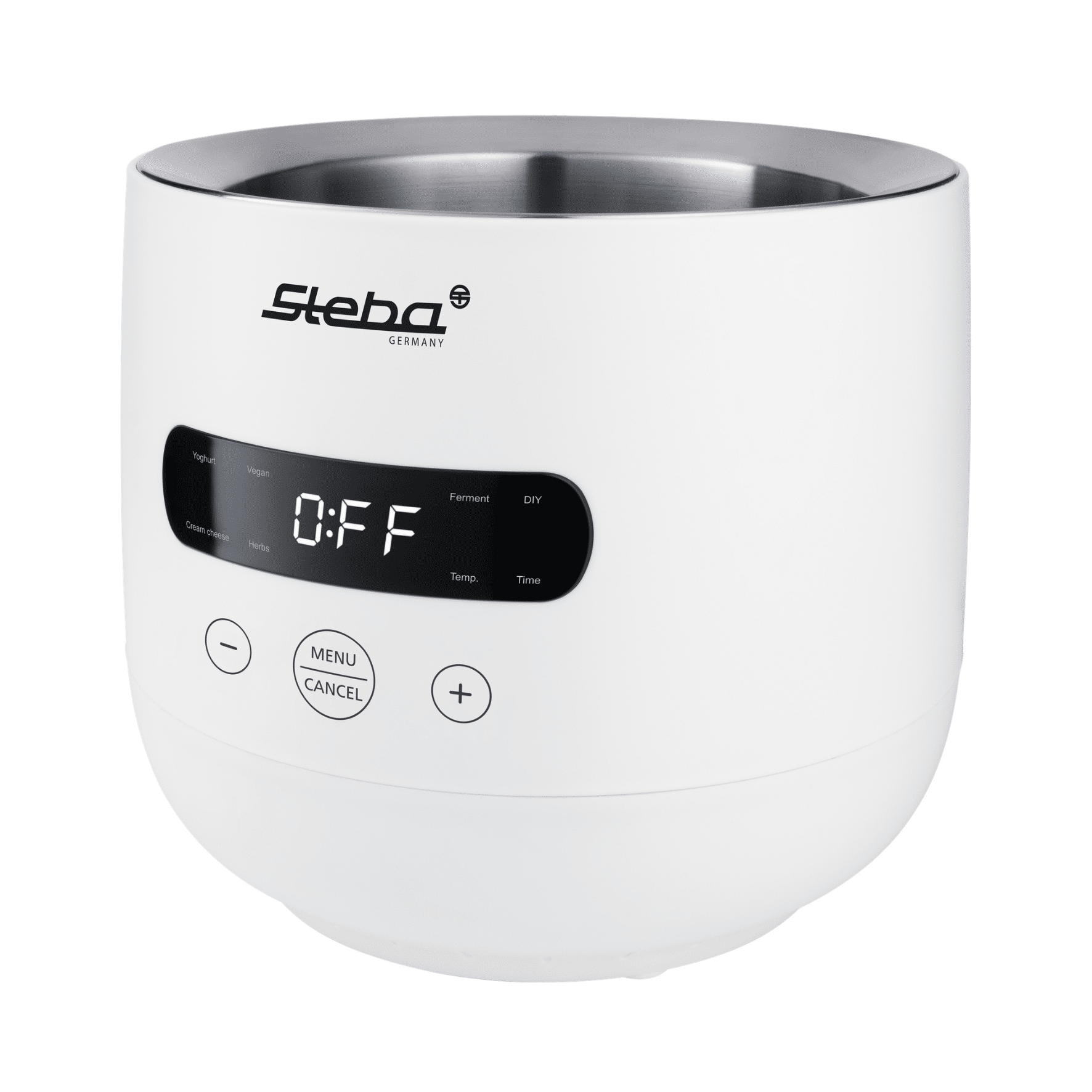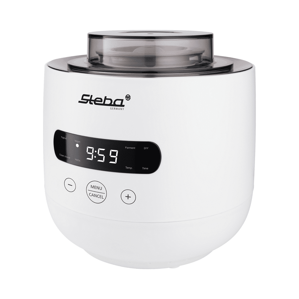 Aparatul de preparat iaurt, de la brandul german Steba Germany, te ajuta sa pregatesti iaurturi delicioase si naturale, fara conservanti. Aparatul poate prepara pana la 2 litri de iaurt, cu ajutorul programelor prestabilite. Mai mult, poti prepara si iaurt vegetal sau fara lactoza, crema de branza, ulei si otet.
