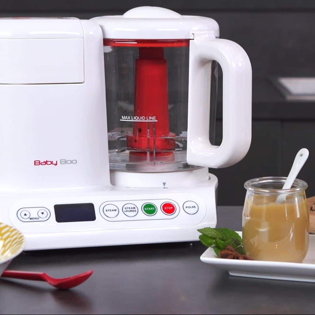 Este dotat cu o masina de gatit cu aburi si cu un mixer pentru a pregati toate mesele copilului dvs., cu un timp de preparare cuprins intre 15 si 25 de minute.