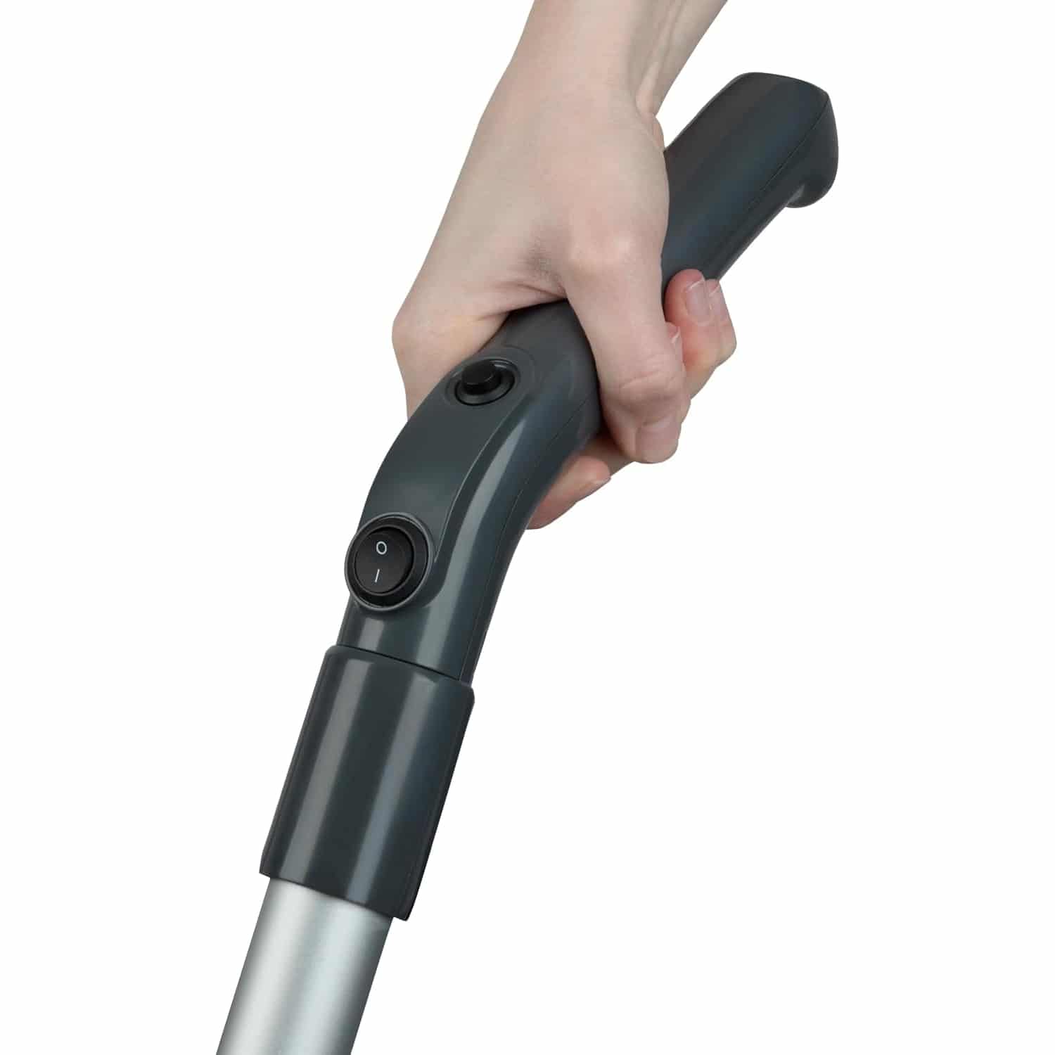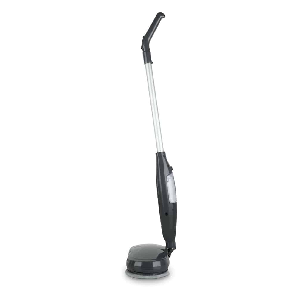Apasati pe comutatorul ce umezeste instantaneu laveta de microfibra de pe capul de curatare. Acesta aluneca pe podele fara a le zgaria, iar laveta se poate curata apoi in masina de spalat.
