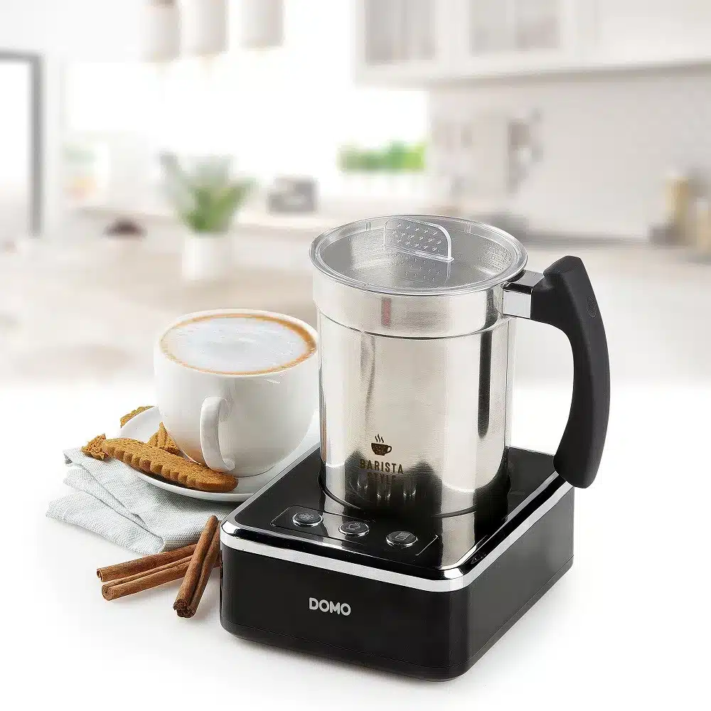 Aparatul pentru spumarea laptelui nu trebuie sa lipseasca din bucataria unui iubitor de cafea! Fie ca preferi cafeaua cu lapte, cappuccino, frappe sau vrei sa prepari o ciocolata calda cremoasa copiilor, DOMO iti ofera solutia perfecta!