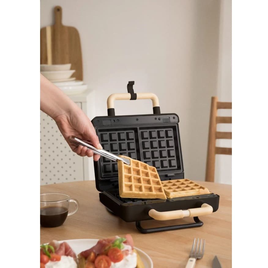 Dispozitivul este completat si de manerul termoizolat si baza antiaderenta, asigurand o manipulare sigura si un suport stabil. Astfel, aparatul de vafe poate fi operat in siguranta si confort.