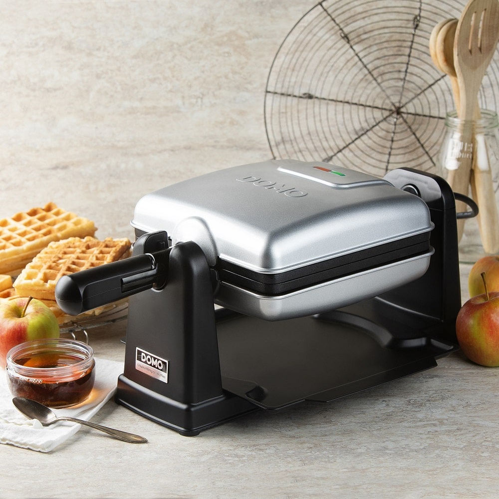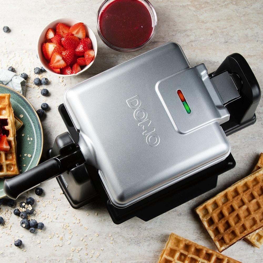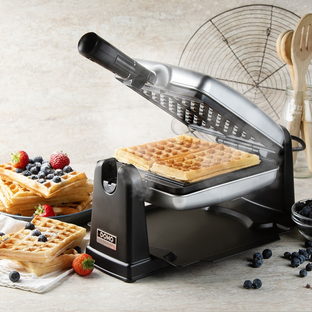 Aparatul pentru preparat vafe Rotating Waffle Maker, de la DOMO, iti ofera o experienta placuta si simpla de preparare a unor vafe pufoase.