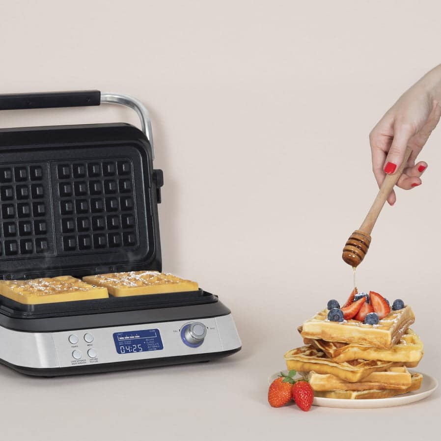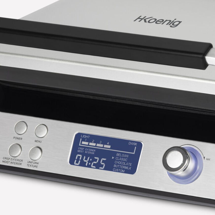 Aparatul de preparat gofre belgiene GFX800, de la cunoscutul brand german H.Koenig, este perfect pentru cei ce iubesc desertul! Fie ca va plac vafele cu ciocolata, cu fructe si frisca sau cu miere, acest aparat vine in ajutorul dumneavoastra, preparand 2 gofre simultan!