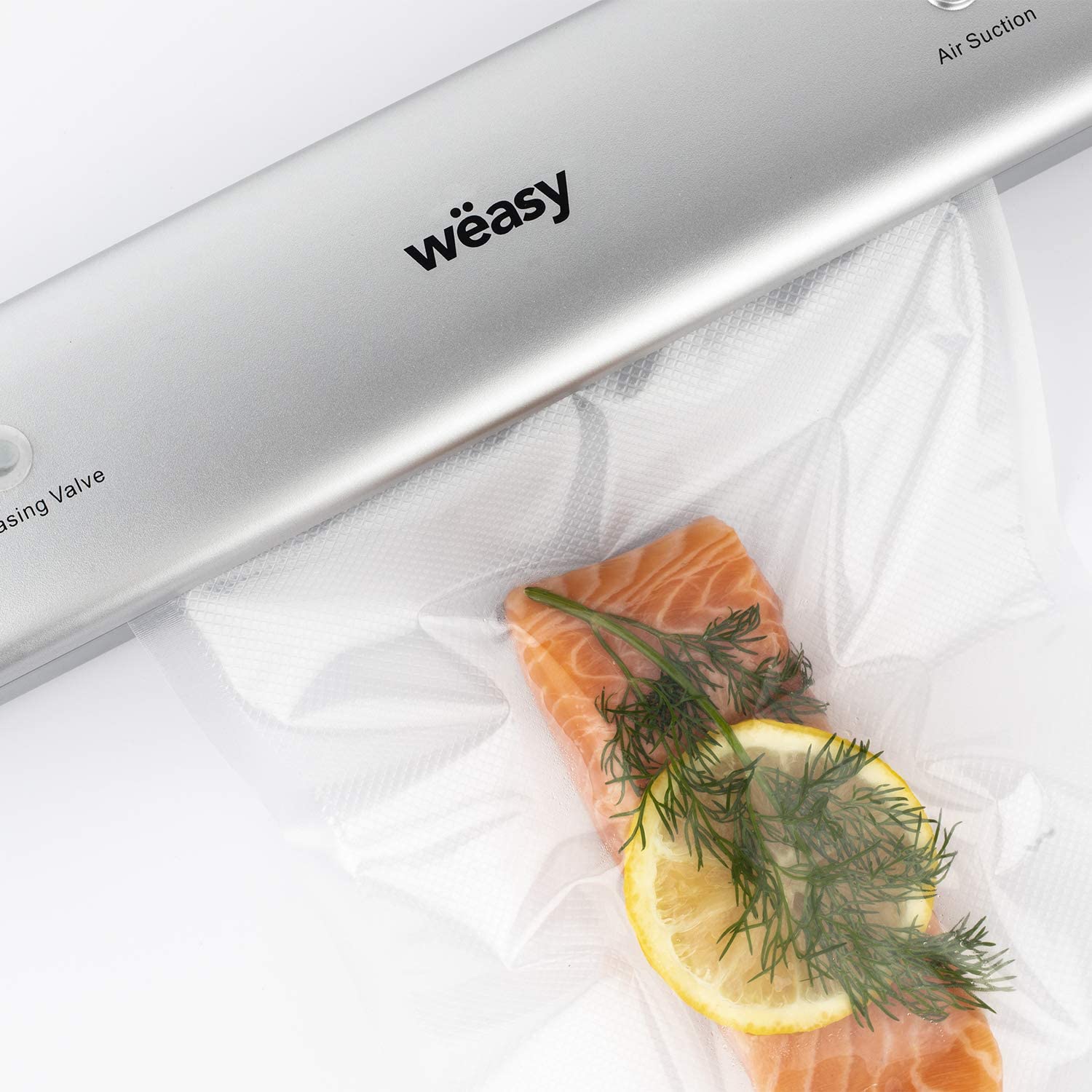Aparatul de vidat Weasy SIL 85 este usor de utilizat si puteti ambala in vid atat alimente uscate, cat si umede in doar 10 secunde! In acest mod, eliminati riscul oxidarii mancarii si asigurati o durata de valabilitate mai mare, pastrand in acelasi timp atat valoarea nutritionala, cat si aroma alimentelor. Puteti depozita mancarea in frigider sau congelator, astfel ca evitati risipirea mancarii, folosind cele 10 pungi de vidat (20×30 cm) reutilizabile.