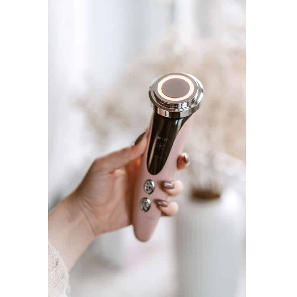 Multifunctionalitatea dispozitivului permite micromasajul cu ultrasunete combinat cu terapia cu lumina fotonica. Acest tip de masaj patrunde profund in straturile pielii: curata perfect, intareste pielea, amelioreaza petele si ofera o stralucire radiantă.