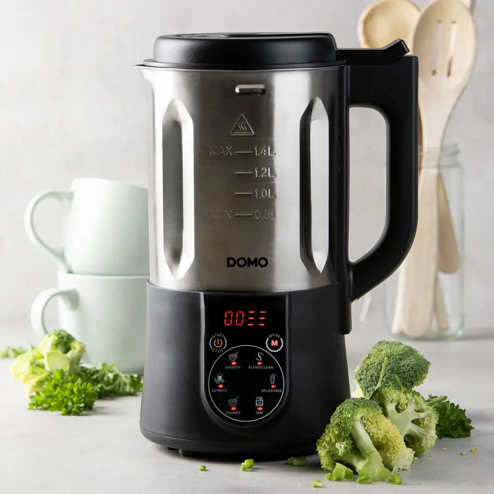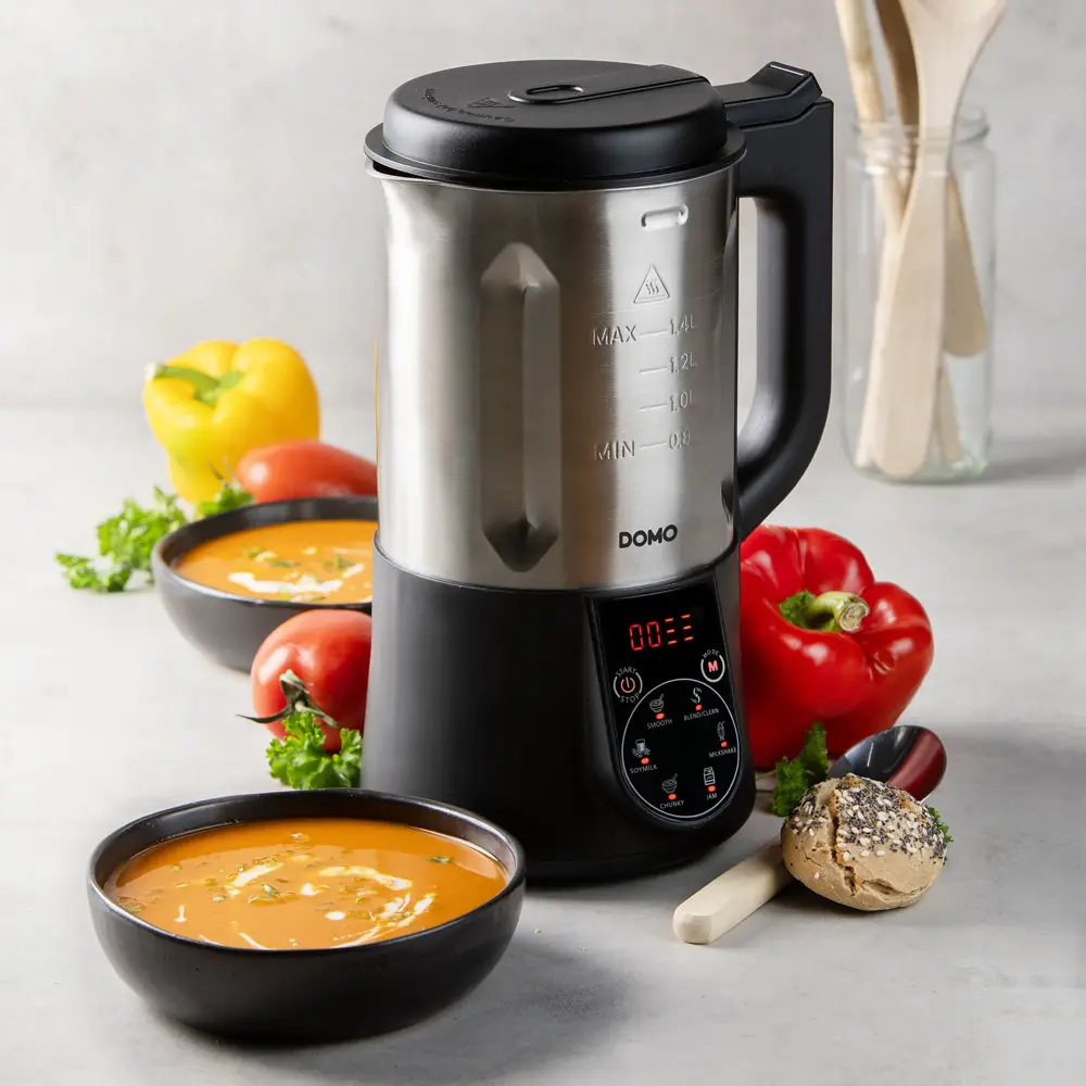 Aparatul pentru prepararea supei crema de la DOMO este ajutorul tau in bucatarie pentru prepararea celor mai rapide si delicioase supe. Cu o capacitate de 1.4 litri si 6 programe automate, poti prepara cu usurinta supe cremoase, smoothie-uri, gem, sau chiar lapte de soia in doar 20 de minute.