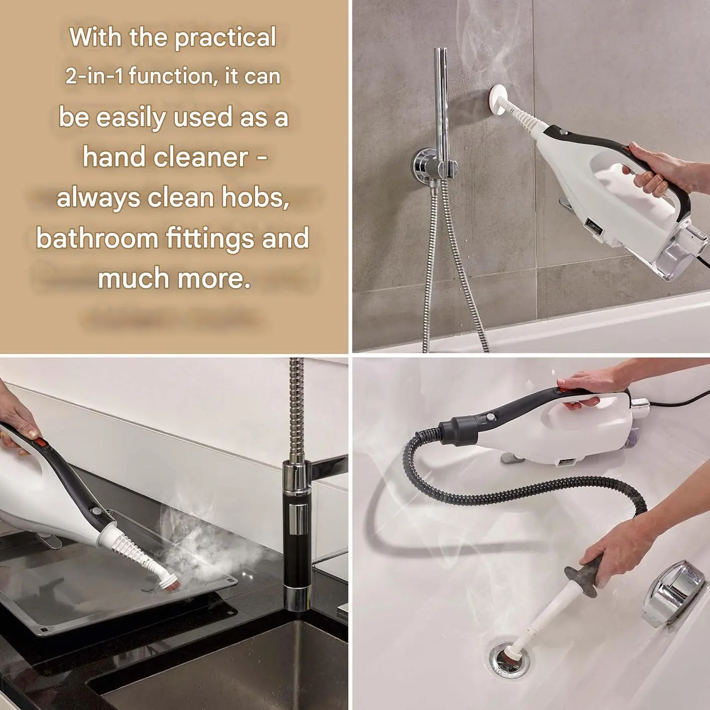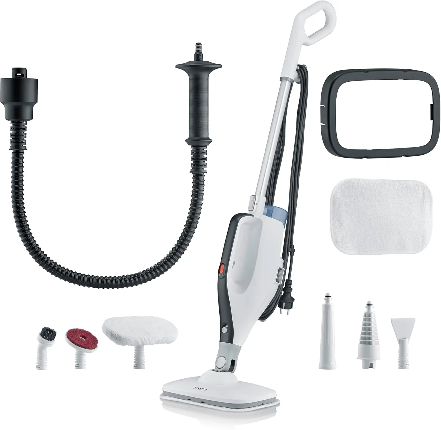 Accesorii incluse: furtun, talpa cu microfibra, perie lata, racleta pentru geamuri, perie rotunda, perie rotunda din otel, laveta