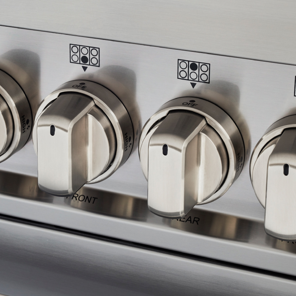 Aceasta piesa este echipata cu 6 arzatoare din alama, inclusiv un arzator dual wok de 5 kW, aceasta oferind flexibilitate maxima pentru diverse metode de gatit. Suporturile din fonta asigura stabilitate si durabilitate, iar sistemul de siguranta opreste gazul in cazul stingerii accidentale a flacarii.