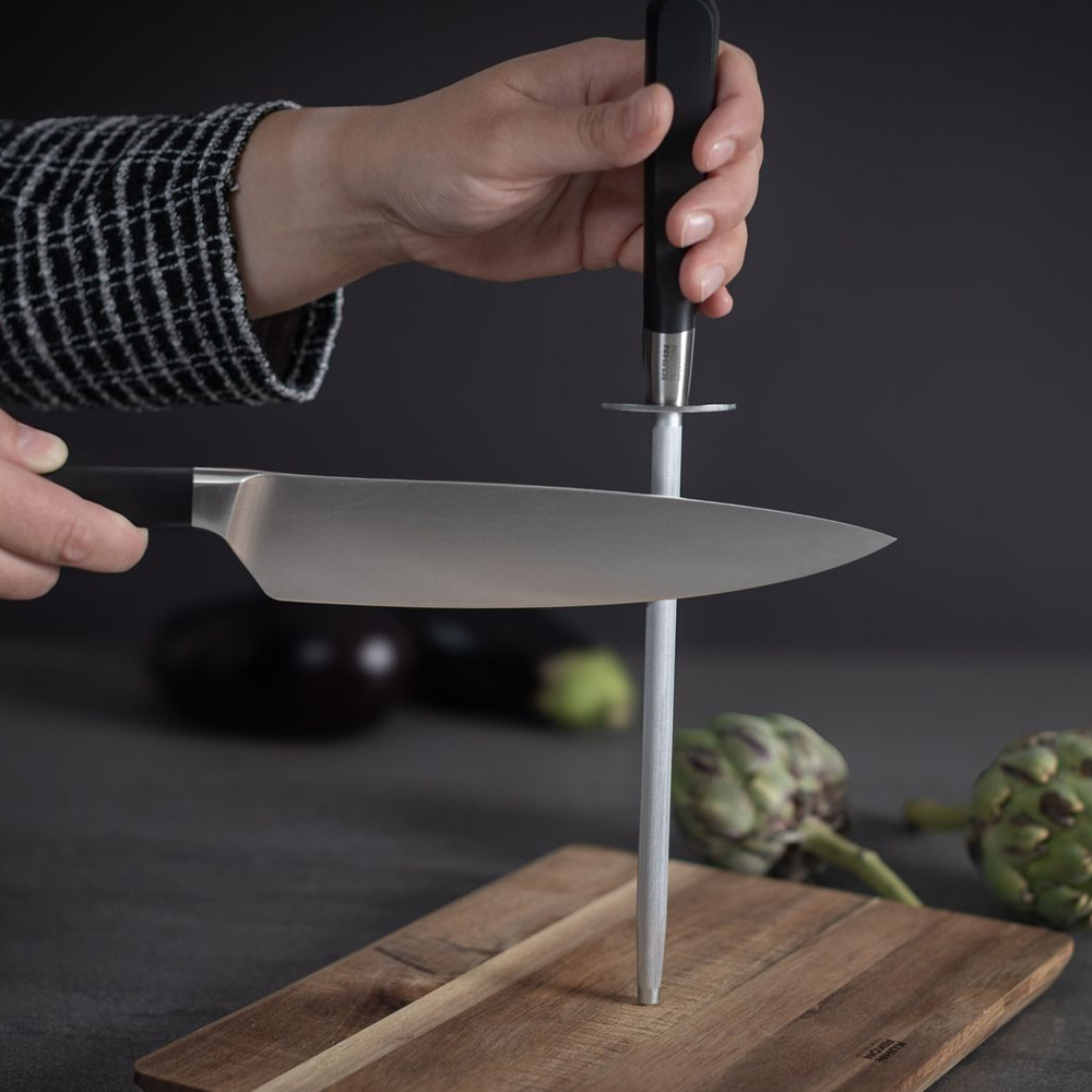 Cu ajutorul dispozitivul, poti ascuti in cel mai scurt timp cutitele tale favorite, facandu-le ca noi. Acest aparat ofera un finisaj lucios si o ascutire de lunga durata, datorita lamei de 20 de cm din otel inoxidabil de inalta calitate.