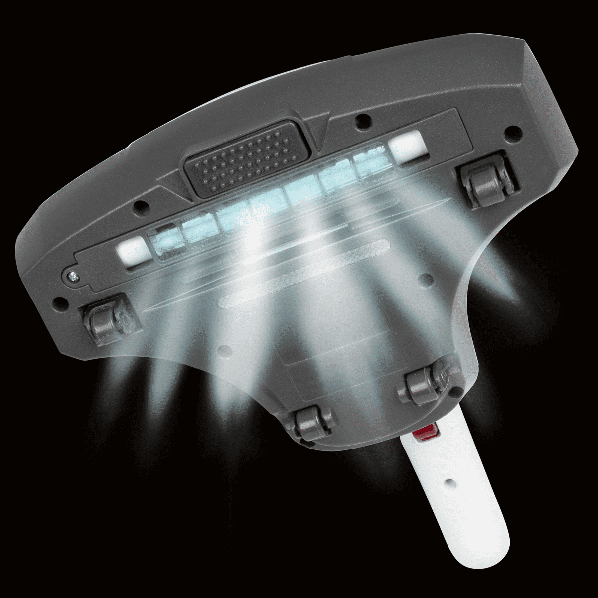 Intr-o singura etapa de curatare, aspiratorul realizeaza 3 pasi pentru o curatare eficienta: functia de vibrare ajuta la separarea mizeriei de pe suprafete ca mai apoi lampa UV antibacteriana sa poata dezinfecta si steriliza iar in final veti aspira toate impuritatile, bacteriile, praful, parul de animale, polen si multe altele. Nu trebuie sa va fie teama de lumina UV deoarece aceasta este proiectata sa se activeze in momentul in care aspiratorul atinge suprafetele.