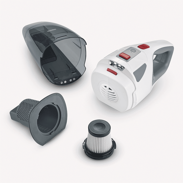 Aspiratorul este usor de depozitat si curatat. Filtrul de praf este lavabil astfel ca il puteti reutiliza.