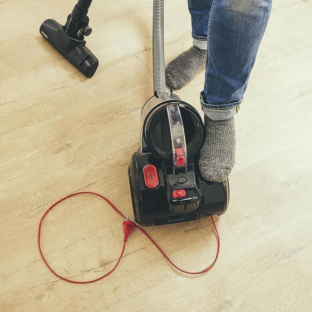 Aspiratorul este usor de manevrat datorita cablului lung si al rotilor si poate fi transportat dintr-o camera intr-alta cu ajutorul manerului de transport.