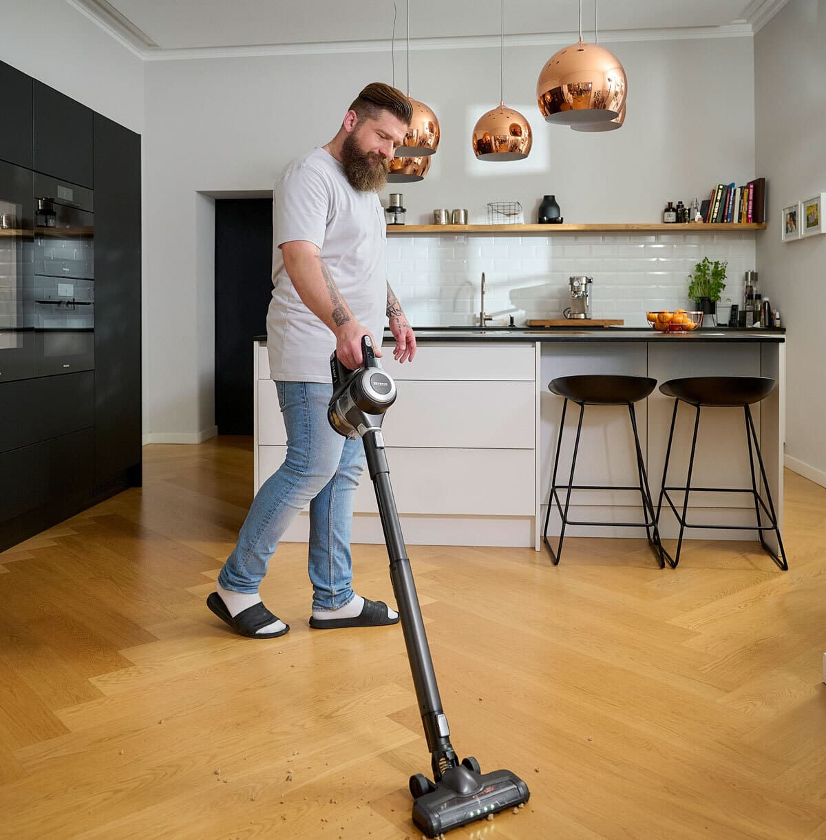 Aspiratorul reincarcabil are 2 trepte de putere, inclusiv modul Eco, ce asigura o curatare eficace.