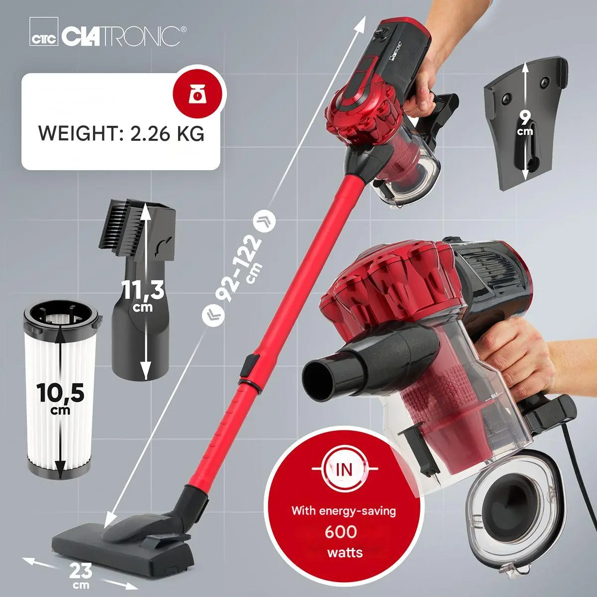 Aspiratorul vertical fara sac 2in1, de la brandul german Clatronic, este aliatul de nadejde pentru o curatare eficienta, atat acasa cat si in masina!