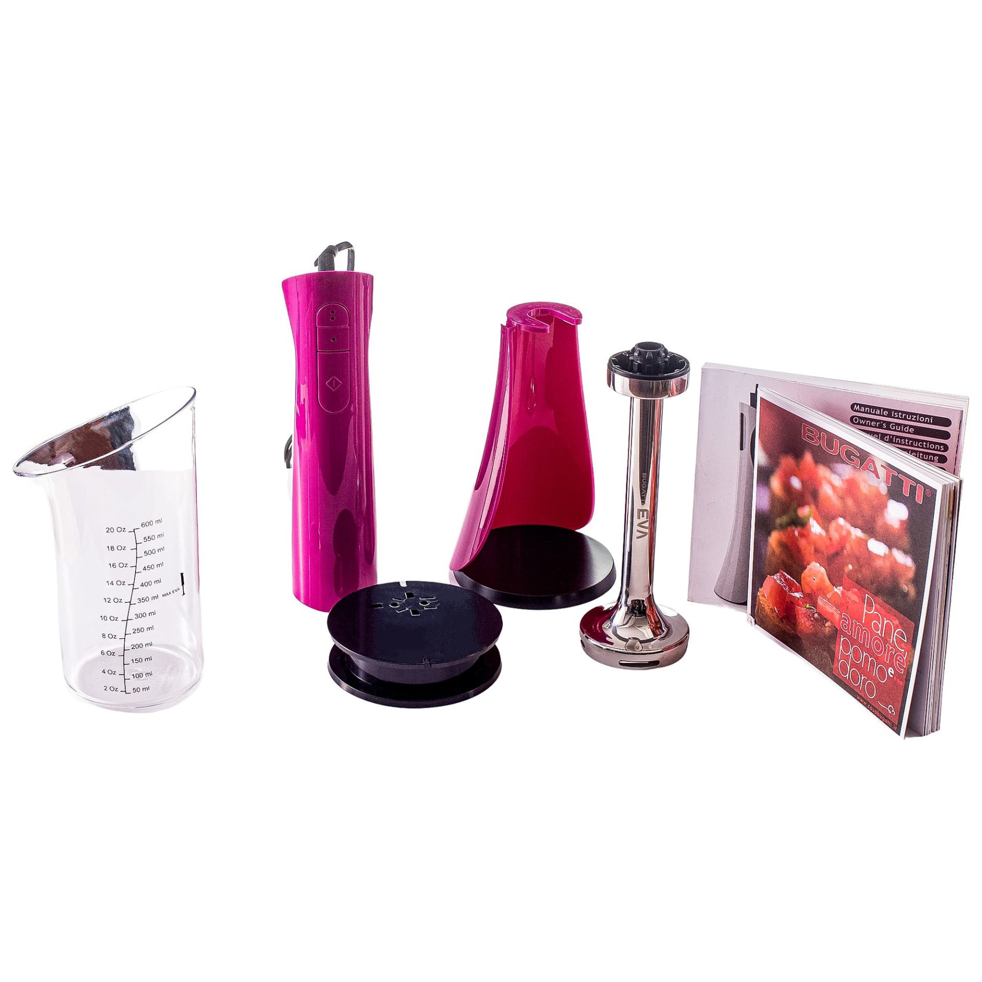 Indiferent daca gatiti prajituri, torturi sau mancaruri savuroase, mixerul de mana Eva este perfect pentru bucataria dumneavoastra. Cu linii asimetrice elegante si cu un finisaj lucios de calitate, un design elegant si unic si cu o functionalitate practica, blendeul Bugatti este exact plusul de care are nevoie bucataria dumneavoastra.