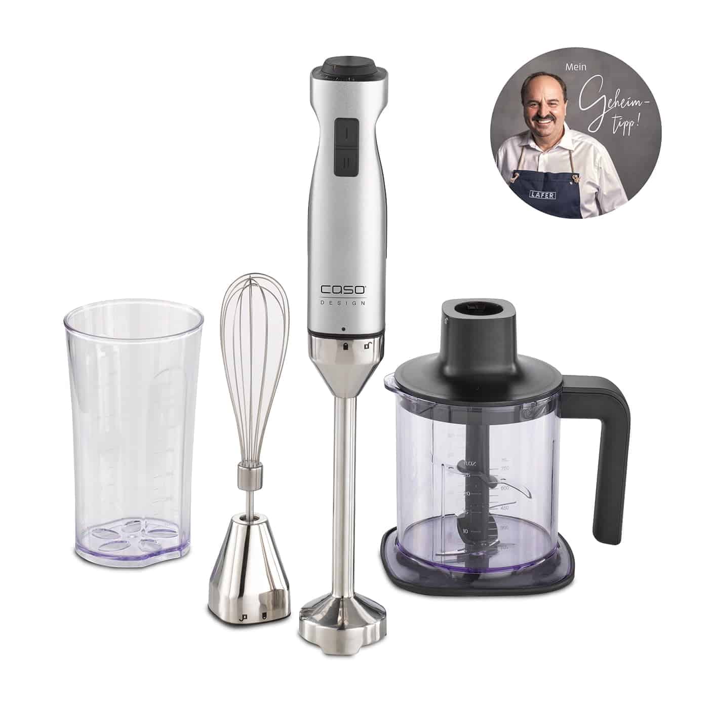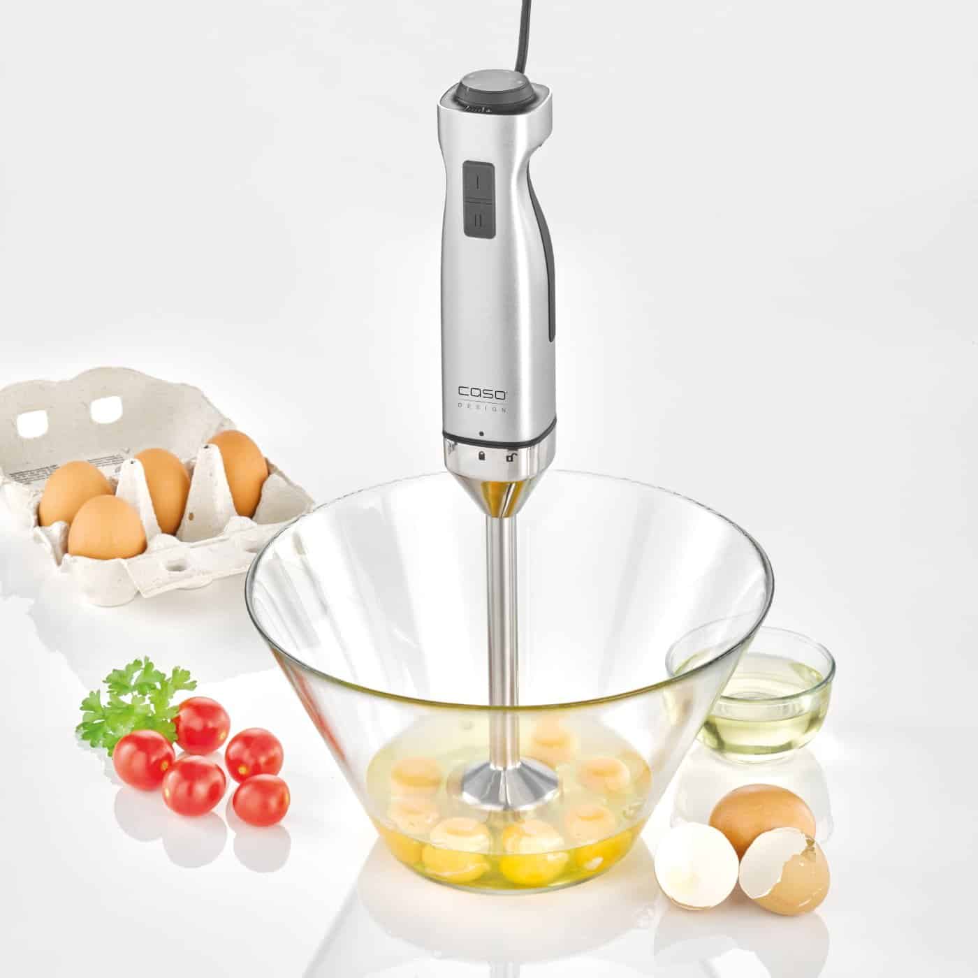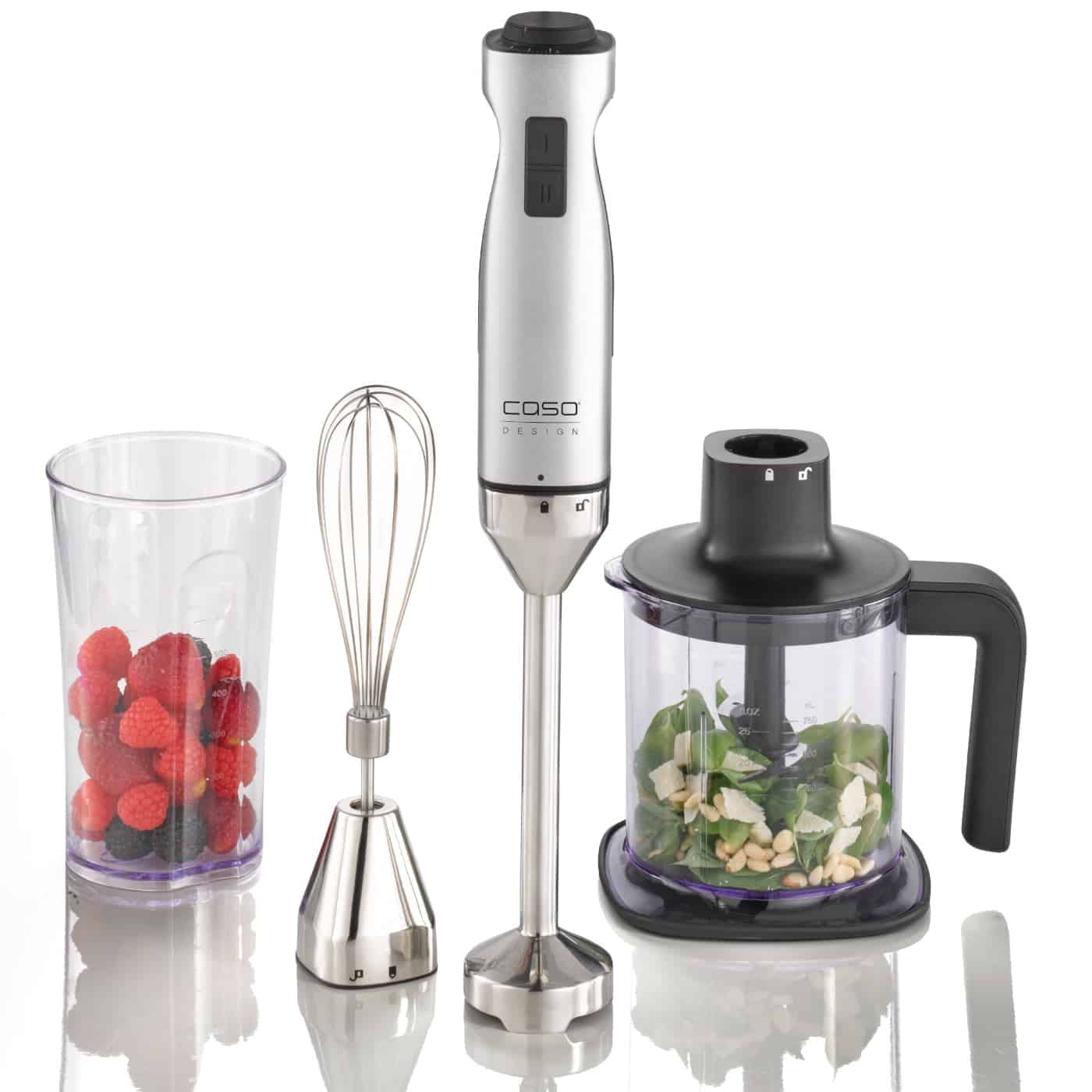Blenderul de mana multifunctional HB1000, de la brandul Caso Germany, amesteca si marunteste orice ingredient fara efort, putand fi folosit pentru o gama larga de preparate.
