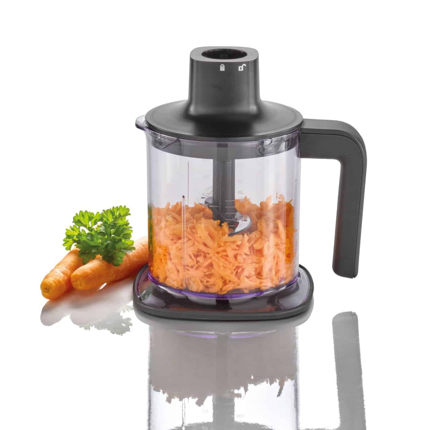 Cu ajutorul chopperului puteti toca legume, carne sau prepara sosuri su supe. Cele 4 lame din otel inoxidabil de inalta calitate toaca si marunteste cat ai clipi.