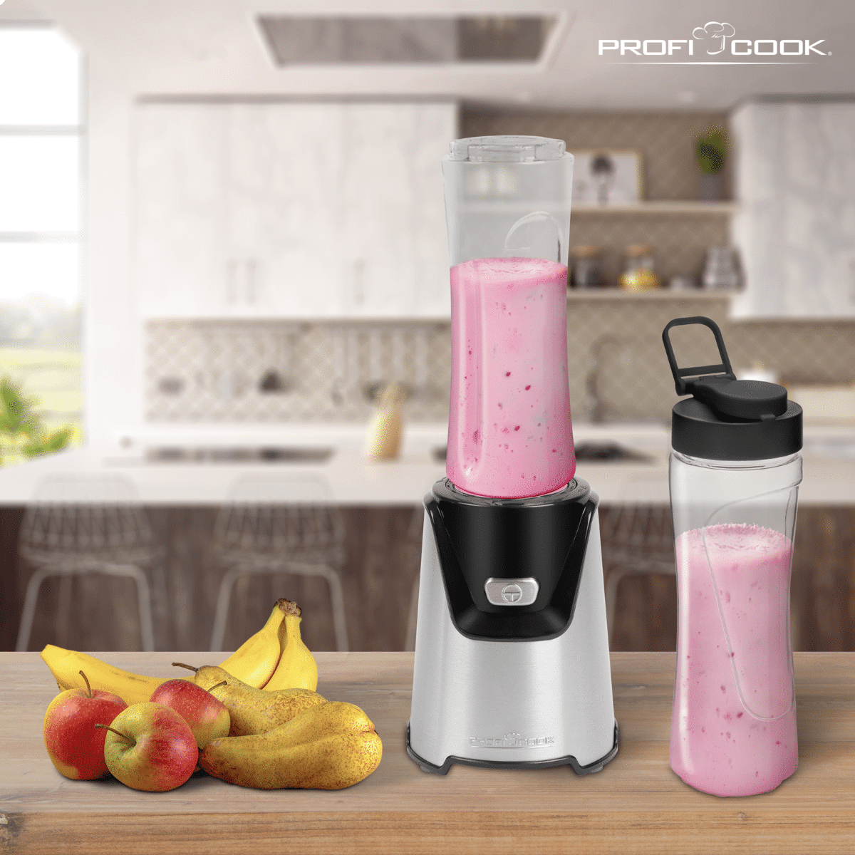 Pentru zilele in care te grabesti sa pleci la sala sau la munca si vrei sa iti iei o bautura fresh cu tine blender-ul de la ProfiCook este accesoriul potrivit. Fie ca iubesti fructele delicioase sau iaurturile cremoase, iti poti prepara un smoothie plin de nutrienti direct in recipientele de 600 ml pe care le poti lua cu tine oriunde.