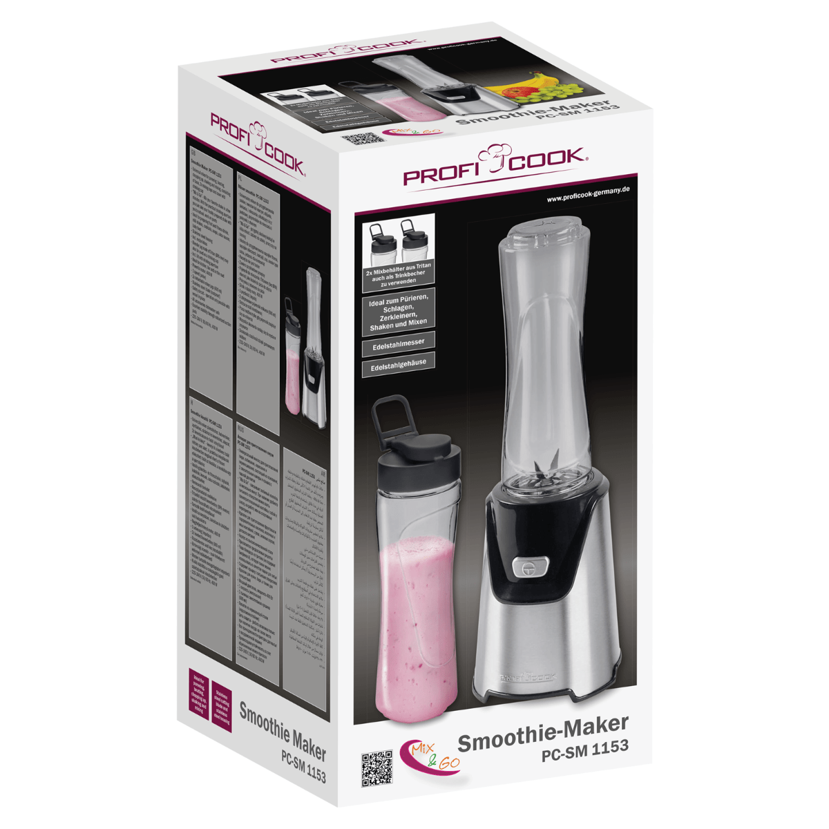 Cu blenderul PC-SM 1153 prepararea smoothie-urilor este simpla si usoara chiar si pentru maini incepatoare! Alege ingredientele preferate, pune-le in mini blender, iar lamele din otel inoxidabil vor prepara, in cateva secunde, o bautura, omogena, delicioasa si sanatoasa gata pentru orice moment al zilei in care aveti nevoie de doza de energie!