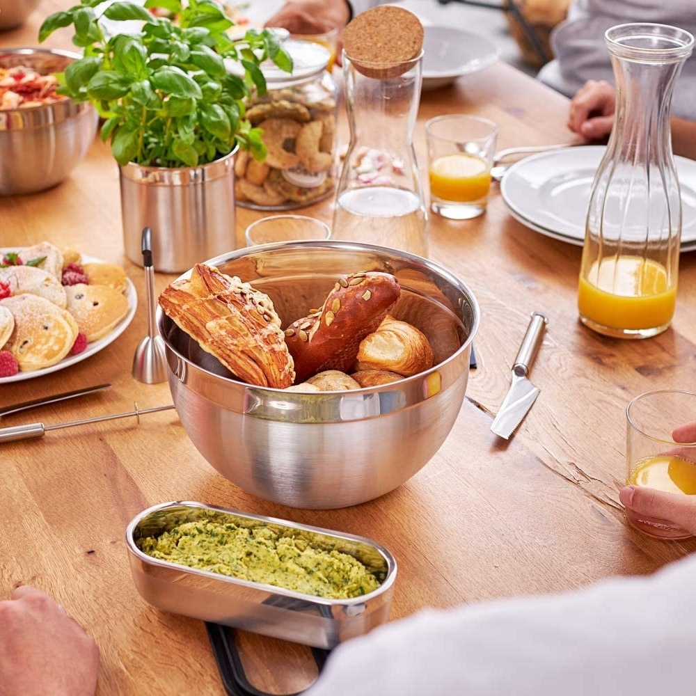 Bolul elegant se potriveste pentru servirea la masa, precum si pentru prepararea si depozitarea alimentelor. Bolul este fabricat din otel inoxidabil mat si lucios si are un diametru de 20 cm. De asemenea, bolul are o margine de turnare ce faciliteaza turnarea lichidelor.