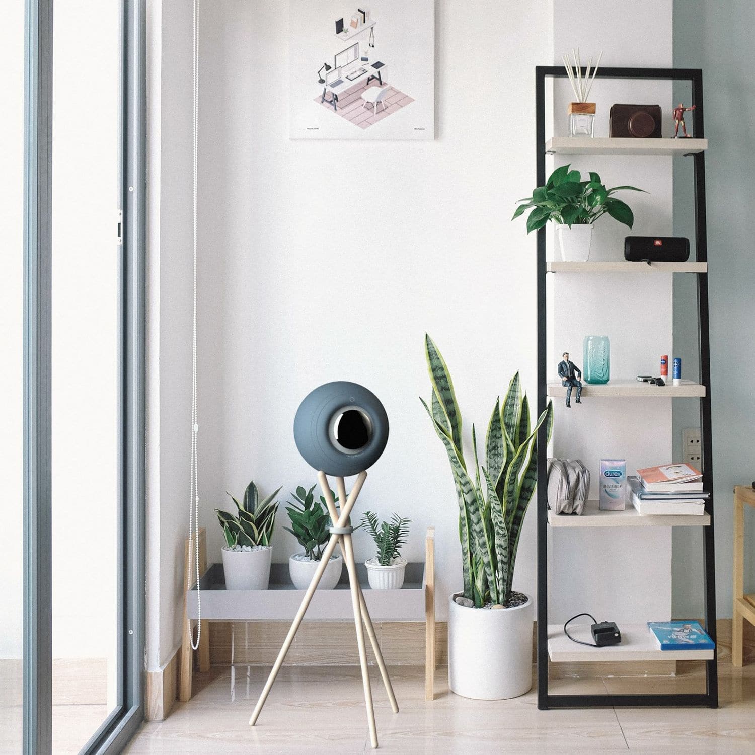 Poate fi pozitionata pe orice suprafata, dar ea vine cu un trepied stabil foarte usor de montat. Mai mult, ea se poate conecta cu alta boxa pentru o si mai buna calitate a sunetului Stereo.