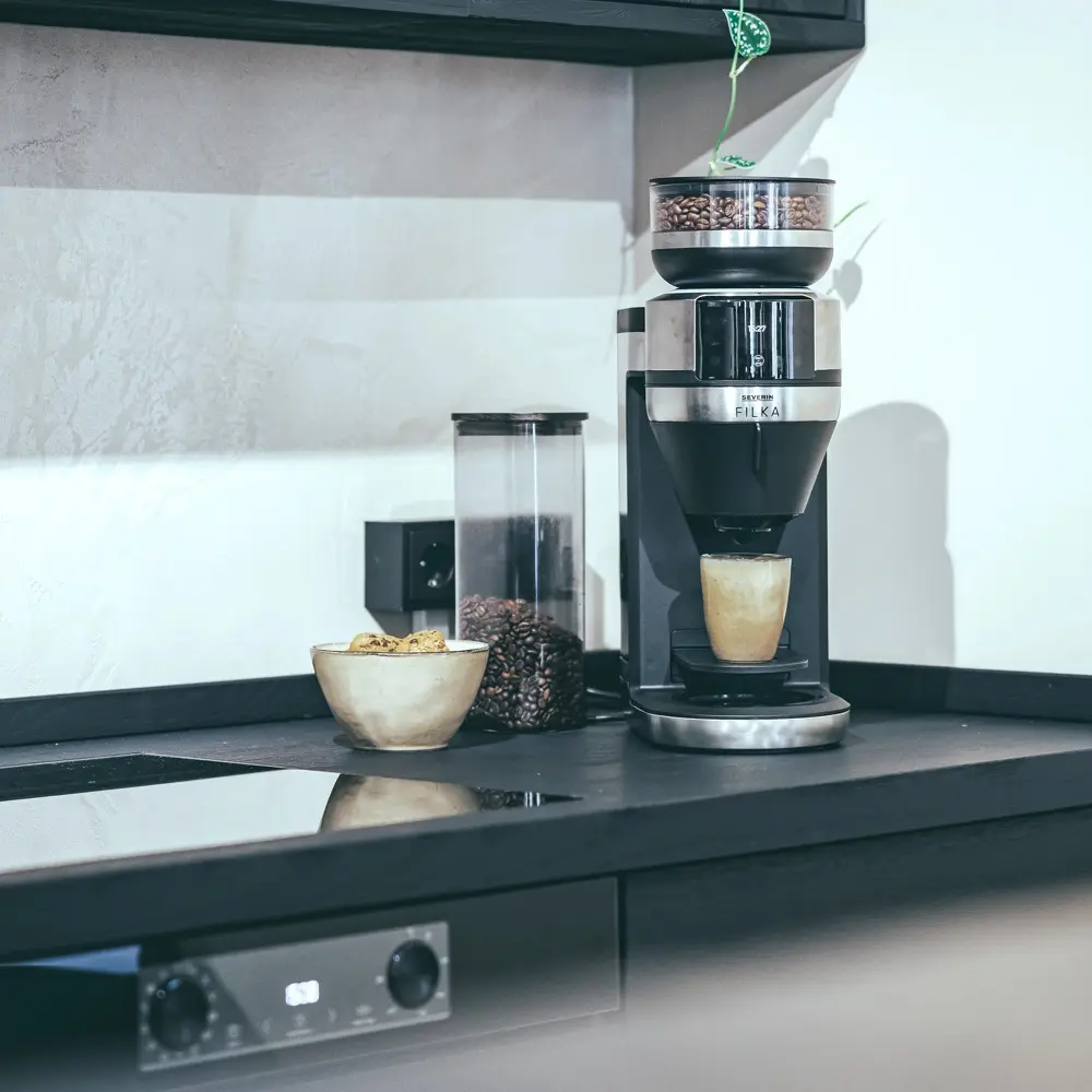 Panoul de control cu senzori touch iti permite sa reglezi cu usurinta intensitatea cafelei in 5 trepte si sa programezi prepararea exact cand ai nevoie. Designul modern, functia anti-picurare si usurinta in utilizare transforma Filka in alegerea ideala pentru orice iubitor de cafea.