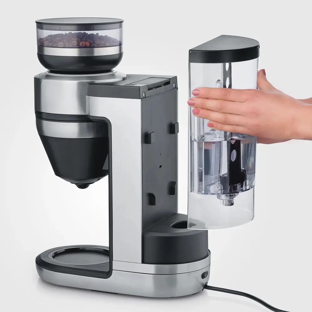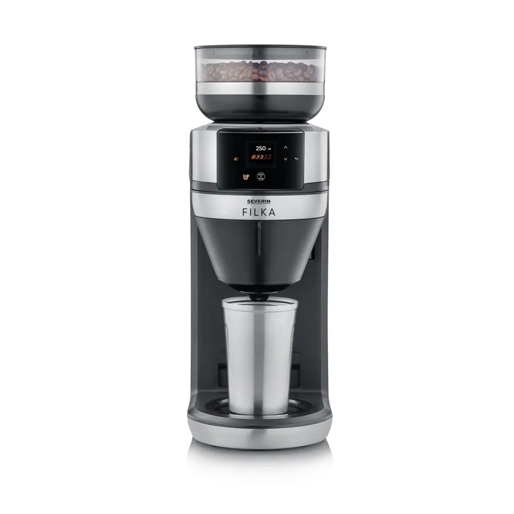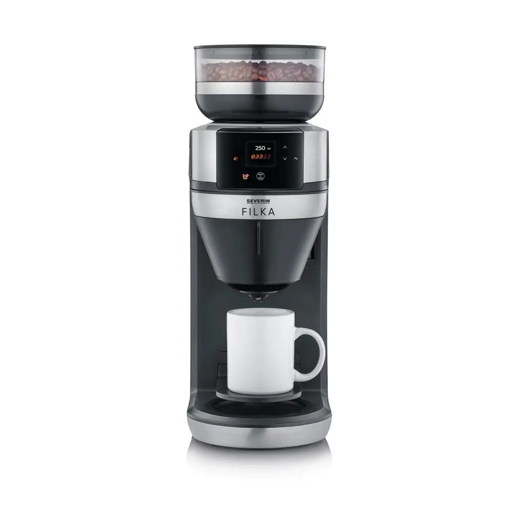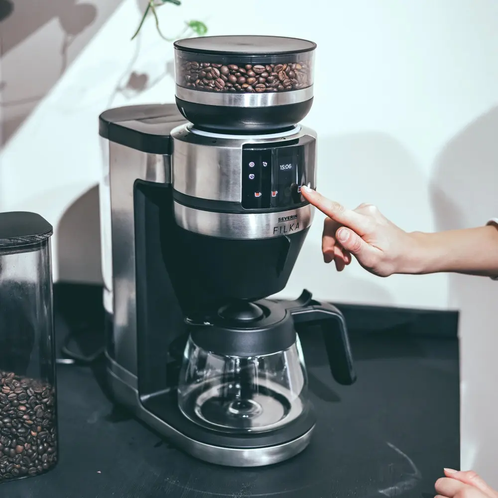 Cafetiera Severin S4852 Filka iti ofera cafea proaspata, exact asa cum iti place, datorita rasnitei conice din inox integrate. Carafa din sticla este ideala atunci cand pregatesti mai multe cafele pentru familie sau colegii de birou, dar poate fi usor indepartata pentru a prepara direct in cesti, cani sau termosuri – perfecta pentru momentele in care esti pe fuga.
