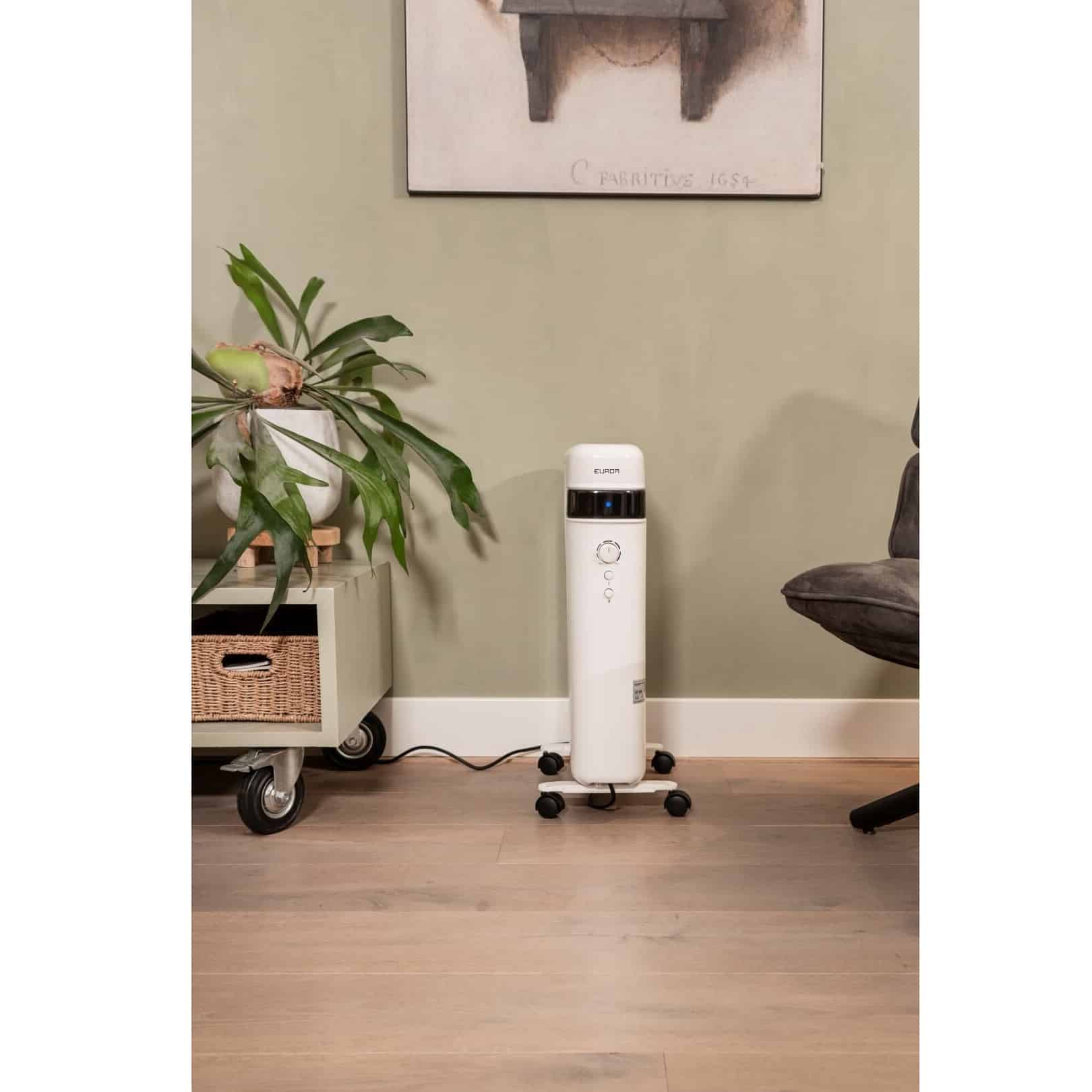 RAD2000, de la brandul olandez Eurom, este un calorifer electric eficient si compact, fara ulei, ideal pentru spatii precum biroul, camera copilului sau living.