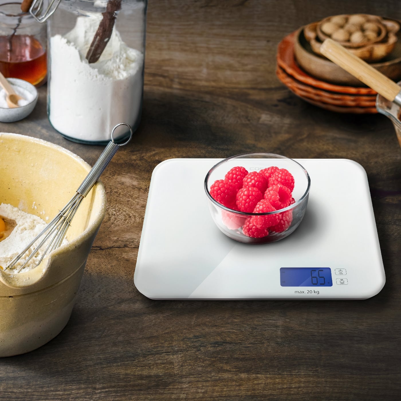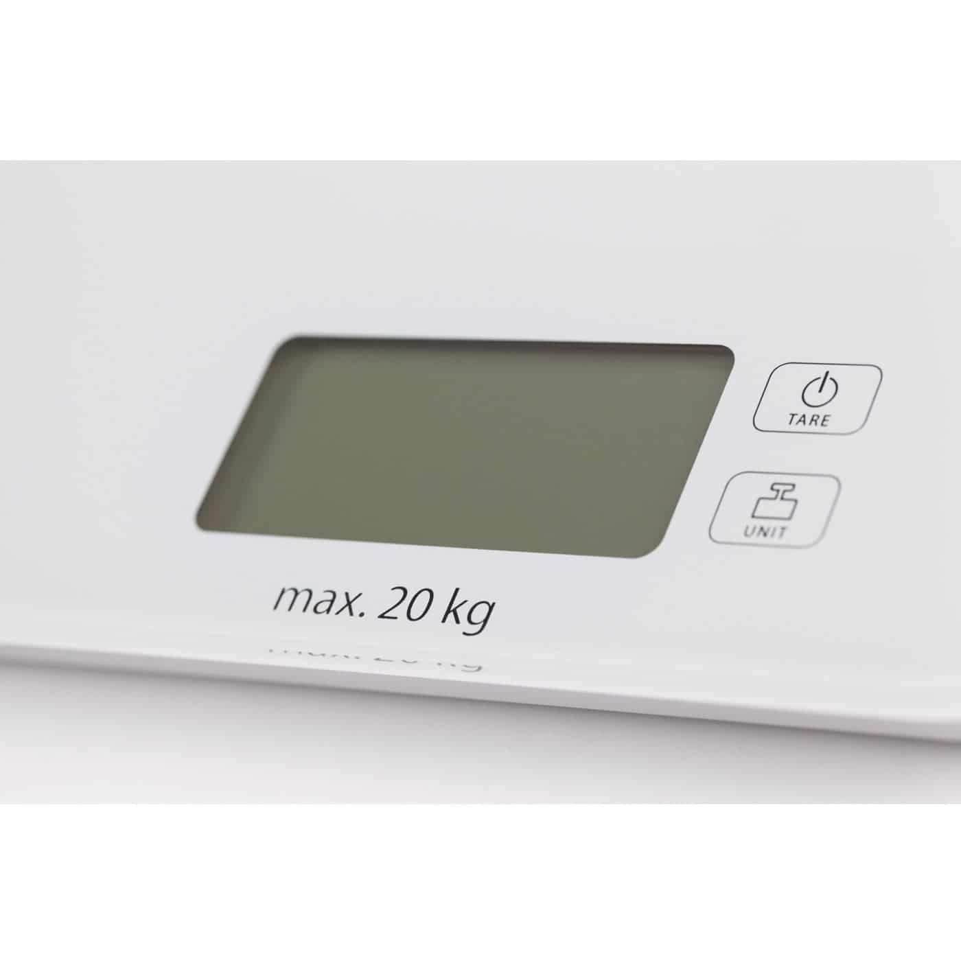 Acest dispozitiv este destinat cantaririi ingredientelor, atat solide cat si lichide. Cu o cantitate maxima de cantarire de pana la 20 kg, cu senzor precis, in trepte de 5 g, afisaj digital si un design deosebit, acest cantar va fi un ajutor de nadejde, fiind potrivit si pentru vase mai mari.