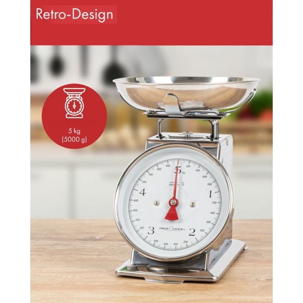 Cum ar fi daca cantarul de bucatarie ar fi si aspectuos si nu ar necesita baterii? Cu un design retro, cantarul mecanic de la Proficook este extrem de usor de folosit, putand fi incarcat cu o sarcina maxima de 5 kg sau 1 litru de lichid.