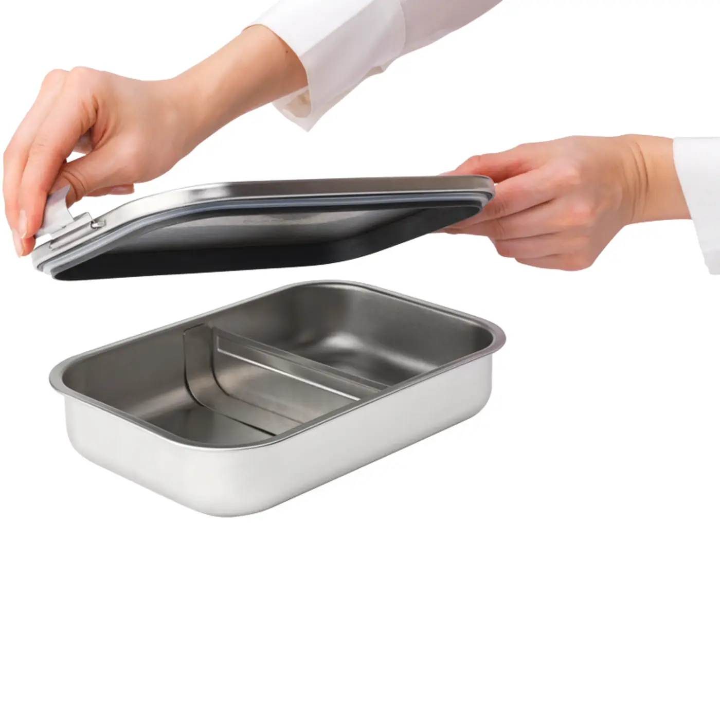 Caserola din otel inoxidabil se inchide ermetic, pastrand prospetimea si aroma pentru mult timp!