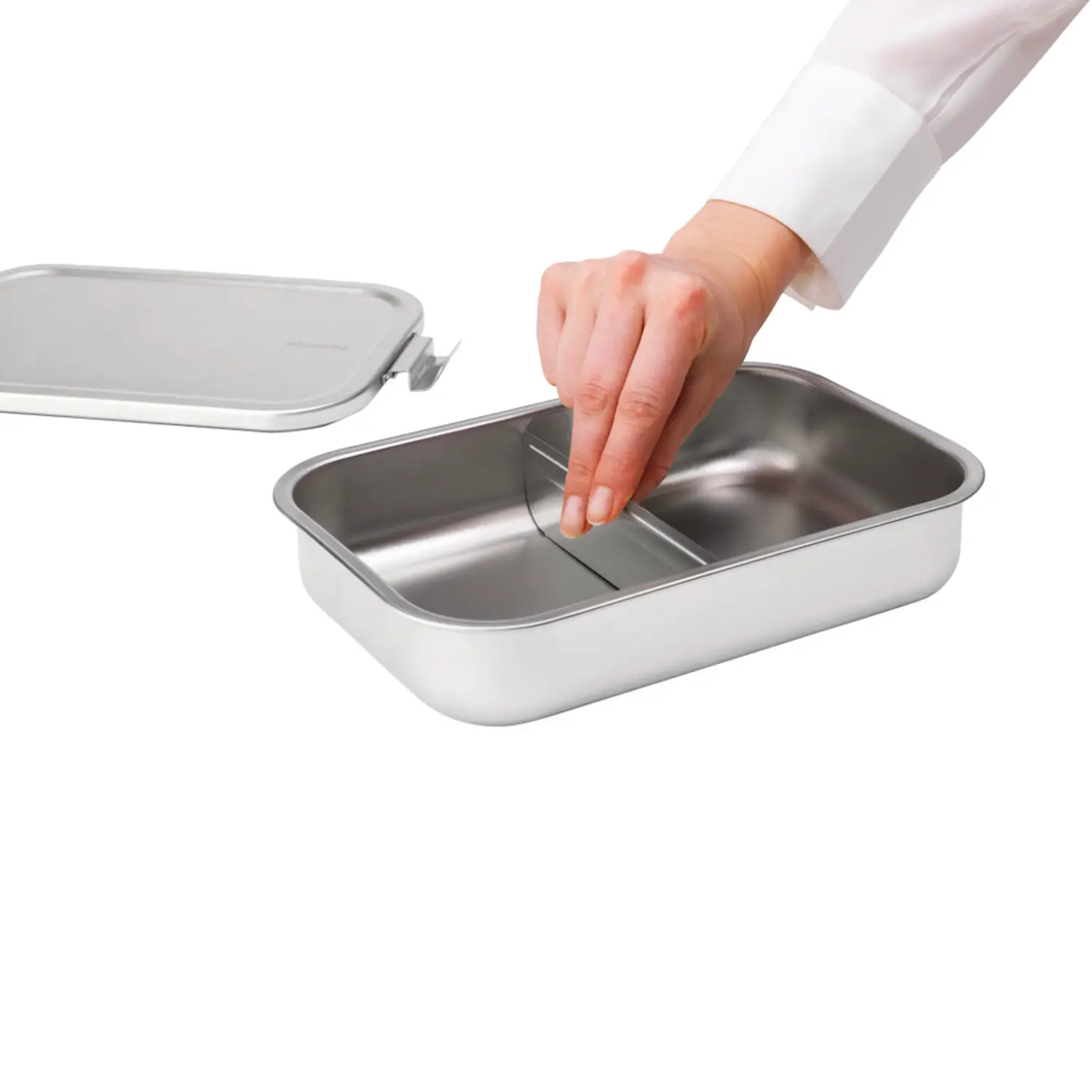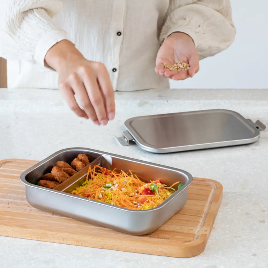 Caserola de 2 litri vine impreuna cu un despartitor pentru a putea separa mancarea. Mai mult, poti curata caserola la masina de spalat vase.