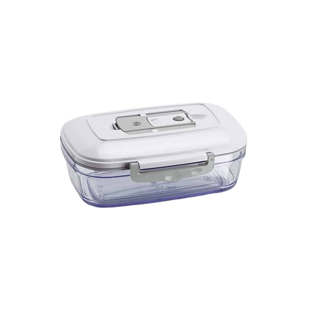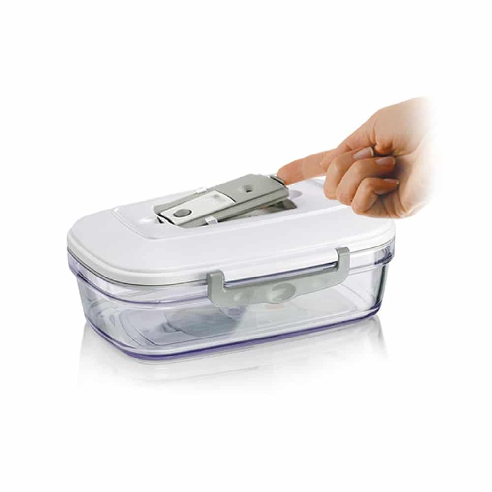 Transparente, compacte si reutilizabile, recipientele pot fi folosite atat in frigider cat si in congelator datorita vidului de lunga durata ce este pastrat cu ajutorul supapei de vid si garniturii din silicon. Sunt fabricate din plastic si sunt compatibile cu masina de spalat vase. De asemenea, pot fi folosite in cuptorul cu microunde si la temperaturi inalte (maxim 80°C).