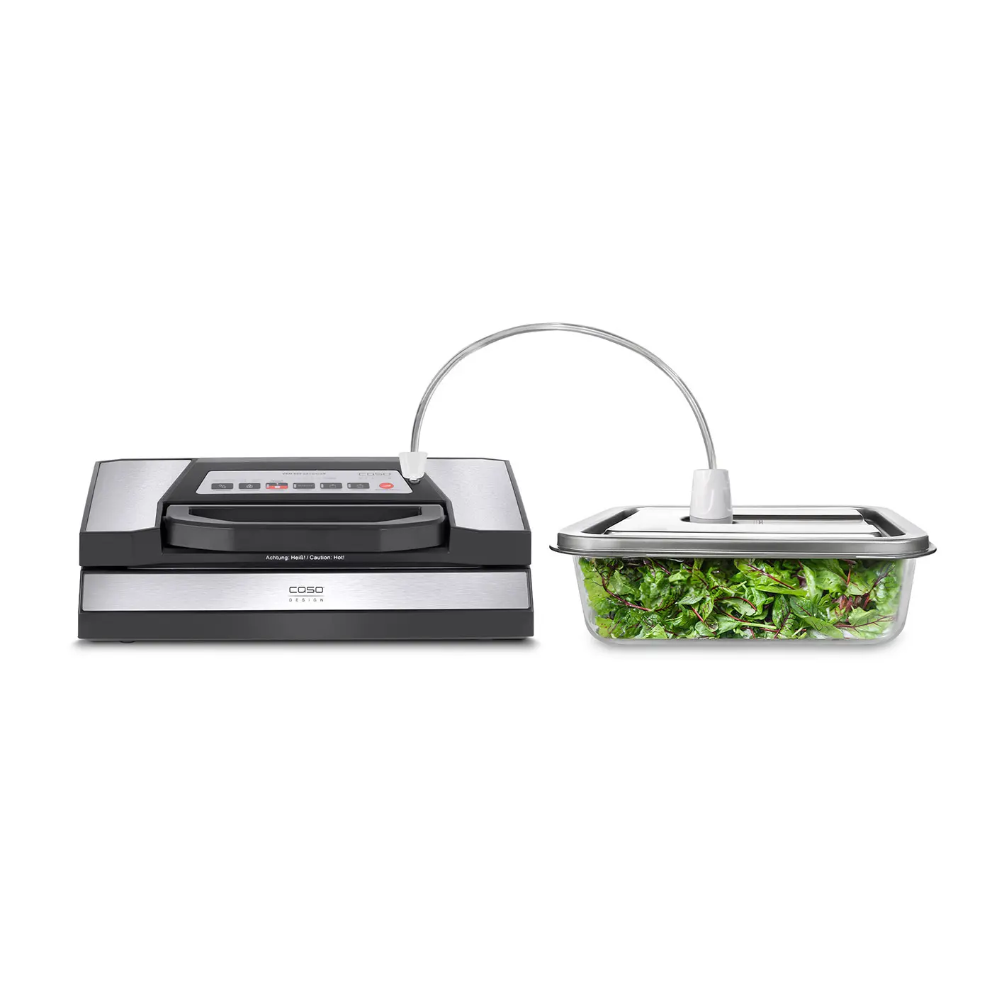 Caserola este compatibila cu pompa VacuOne Touch, cu pompa manuala 1178, dar si cu aparatele de vidat cu functie de vidare recipiente. Pentru vidarea cu ajutorul aparatelor este necesar adaptorul Caso 90117705