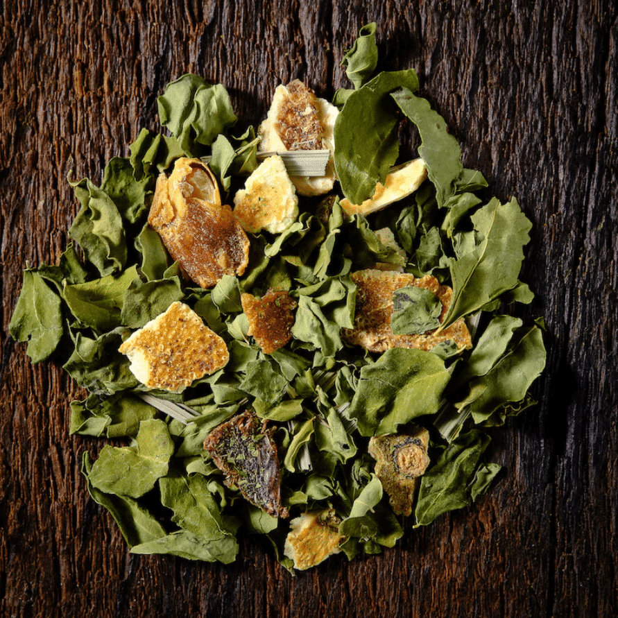Ingrediente: frunze de Moringa (70%), frunze de lemongrass (10%), coaja de lamaie (10%), coaja de portocala (10%), ulei esential de portocala si lamaie