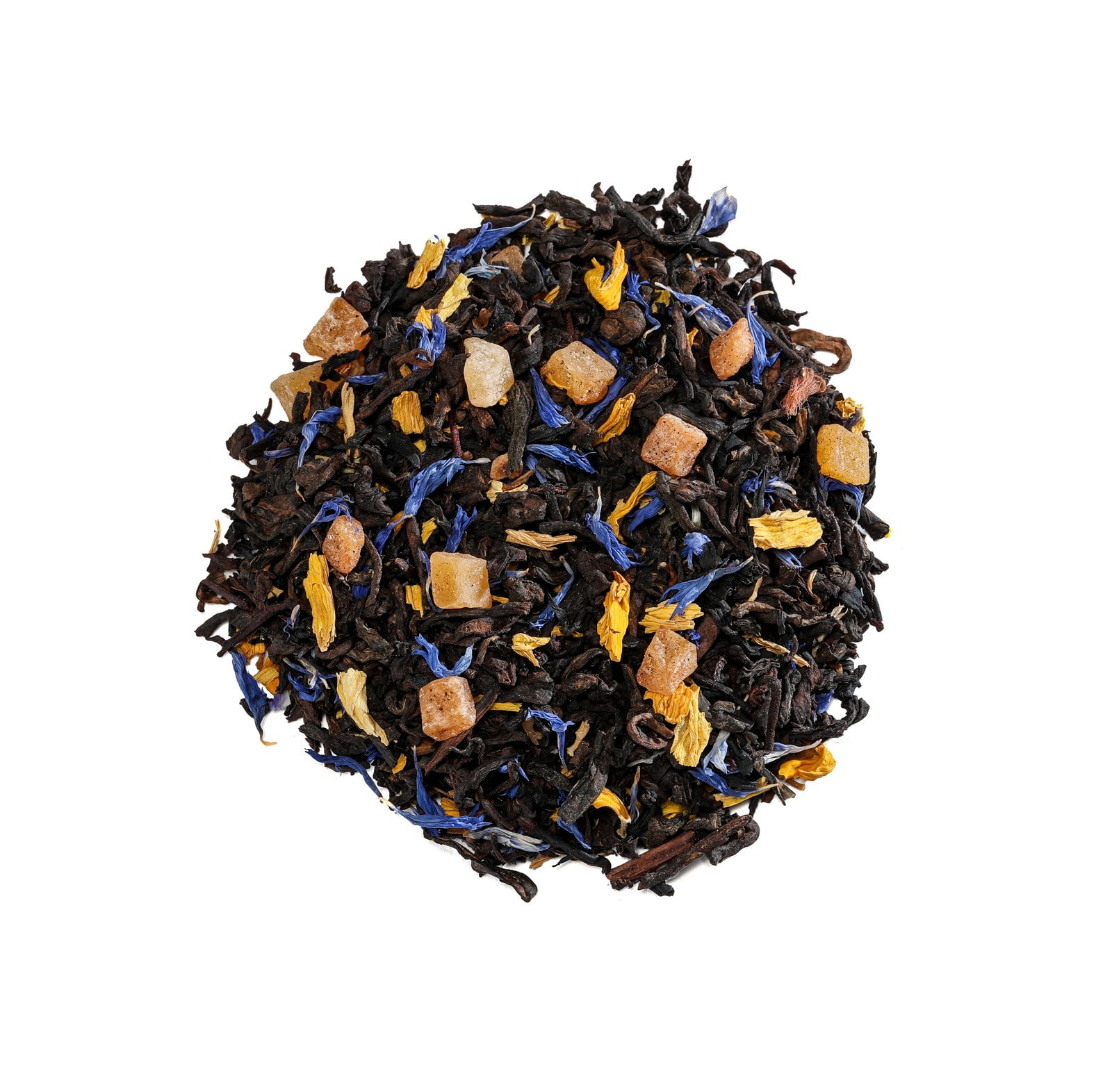 Ingrediente: 80 % ceai Pu`Erh, 14% mango confiat, petale de floarea soarelui, aroma de mango, 1.5 % aroma fructul pasiunii, petale de albastrea