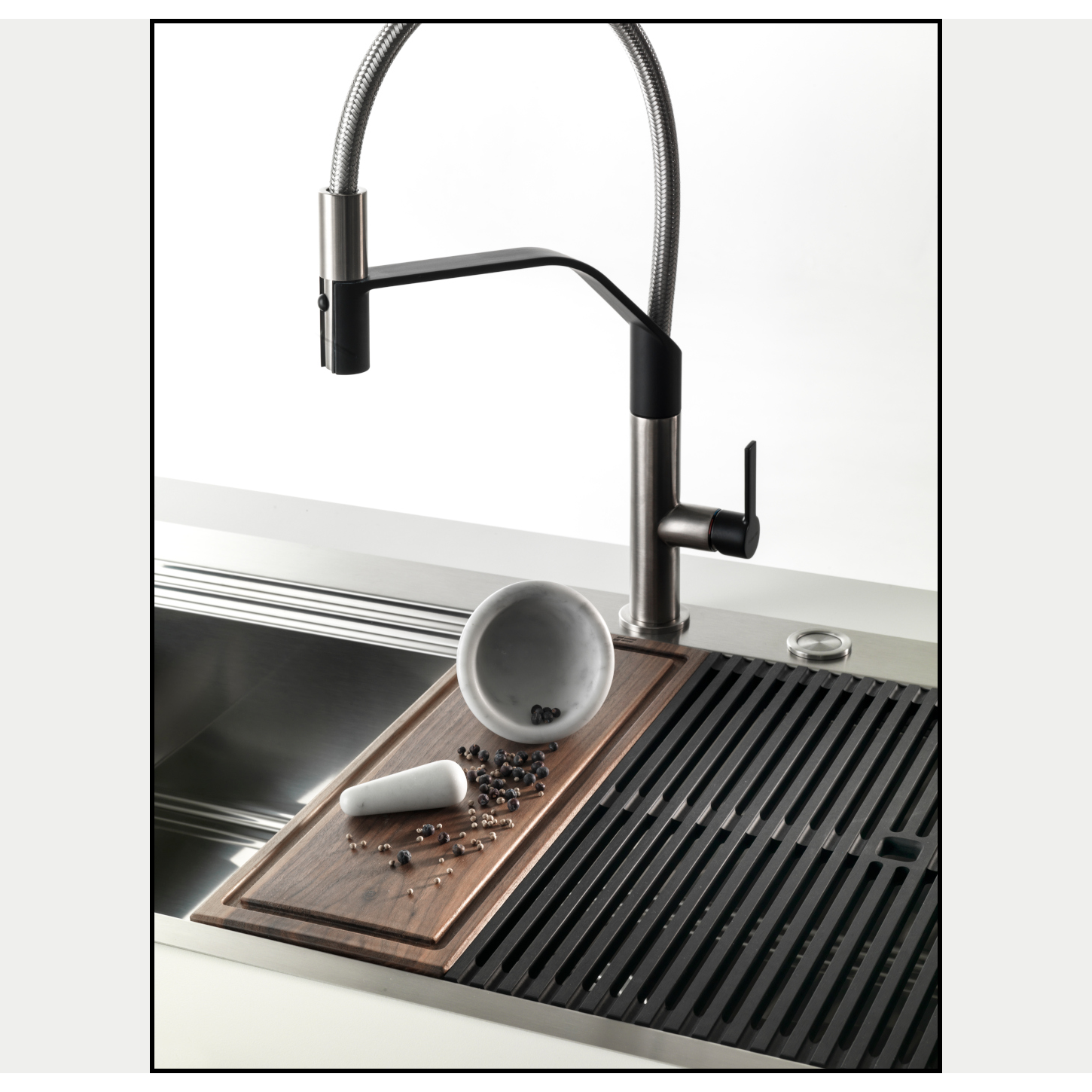 Conceputa ca o solutie premium pentru organizarea bucatariilor moderne, aceasta imbina designul elegant cu materialele de inalta calitate si functionalitatea practica. Sistemul automat de scurgere si preaplinul perimetral asigura control optim si o experienta de utilizare sigura, rapida, igienica si confortabila.
