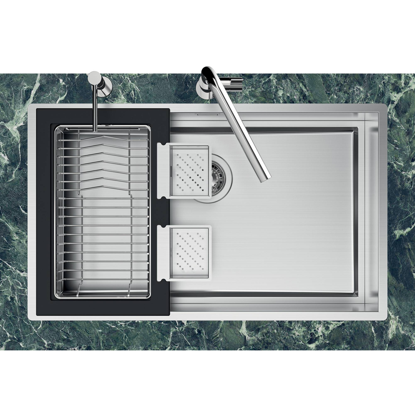 Aceasta piesa este o solutie premium pentru organizarea bucatariilor moderne, combinand un design rafinat cu materialele de inalta calitate si functionalitatea practica. Datorita sifonului practic ce aduna resturile, aceasta chiuveta asigura o utilizare igienica, confortabila si rapida.