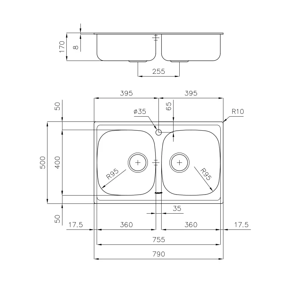 Accesorii incluse: sifon, preaplin, ventil de scurgere, garnituri de etansare, cleme de fixare