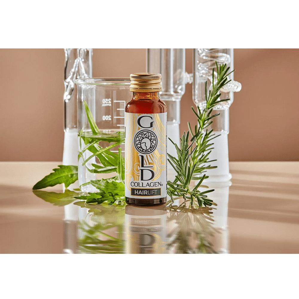 Gold Collagen Hairlift este un supliment alimentar imbogatit cu extract de rucola, keratina hidrolizata si biotina, care sustine ciclul natural al parului si face parul sa arate plin, gros si sanatos.