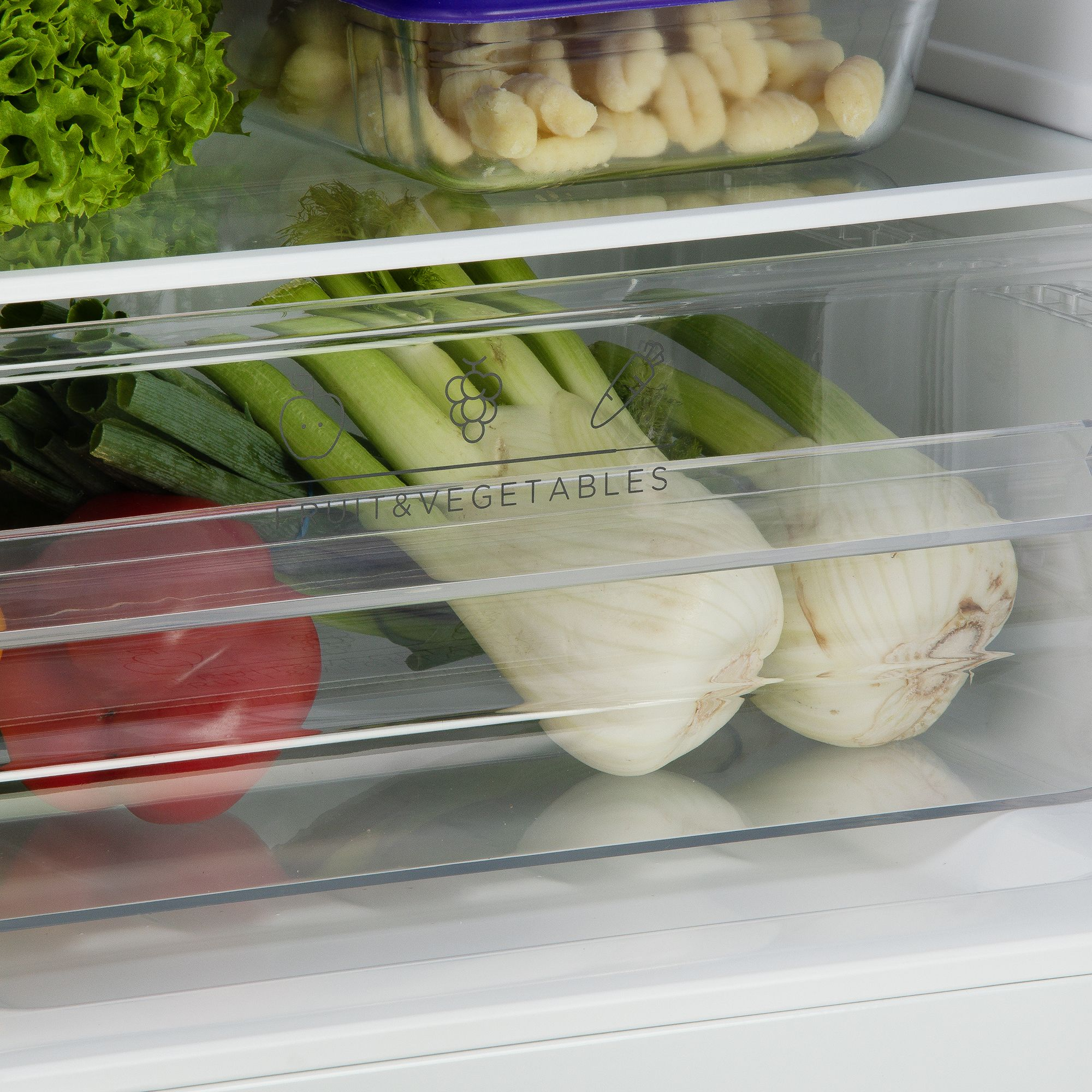 Frigiderul dispune de o capacitate de 262 litri, ceea ce iti permite depozitarea alimentelor cat mai practic. Usa dispune de 3 rafturi, potrivite pentru depozitarea sticlelor de apa, lapte sau a sosurilor. Mai mult, exista un compartiment special pentru pastrarea legumelor si fructelor proaspete.