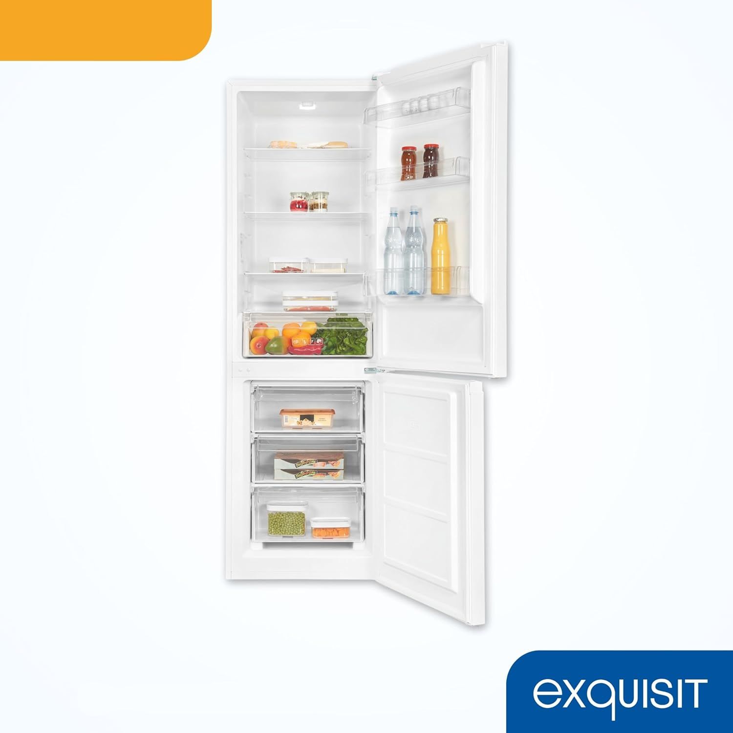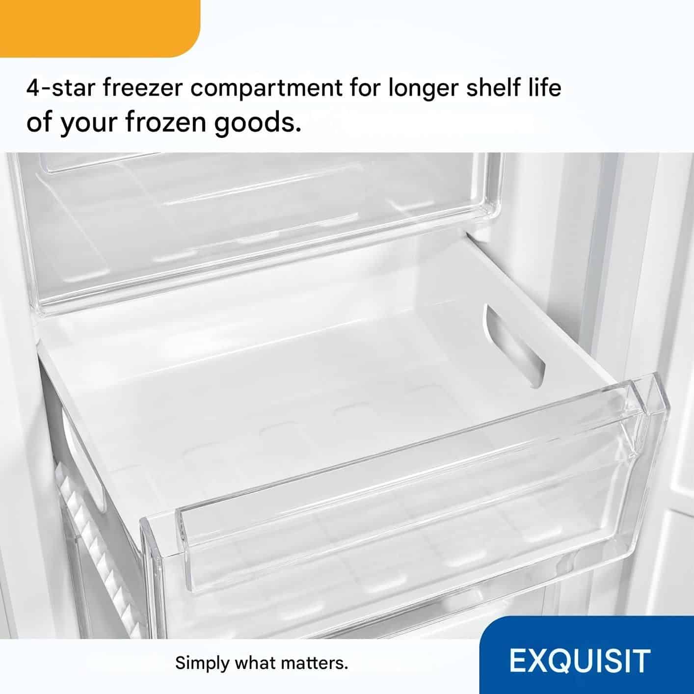 Combina frigorifica, de la brandul german Exquisit, este realizata conform ultimelor tehnologii, cu atentie la detalii si materiale de inalta calitate.