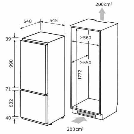 *Se recomanda pastrarea unui spatiu suplimentar de 5 cm pentru o ventilatie optima.