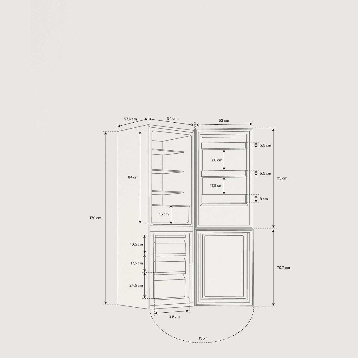 *Combina frigorifica poate fi incastrata in mobila cu conditia de a lasa un spatiu de 5 cm in laterale si 10 cm in spatele aparatului pentru o ventilatie eficienta.